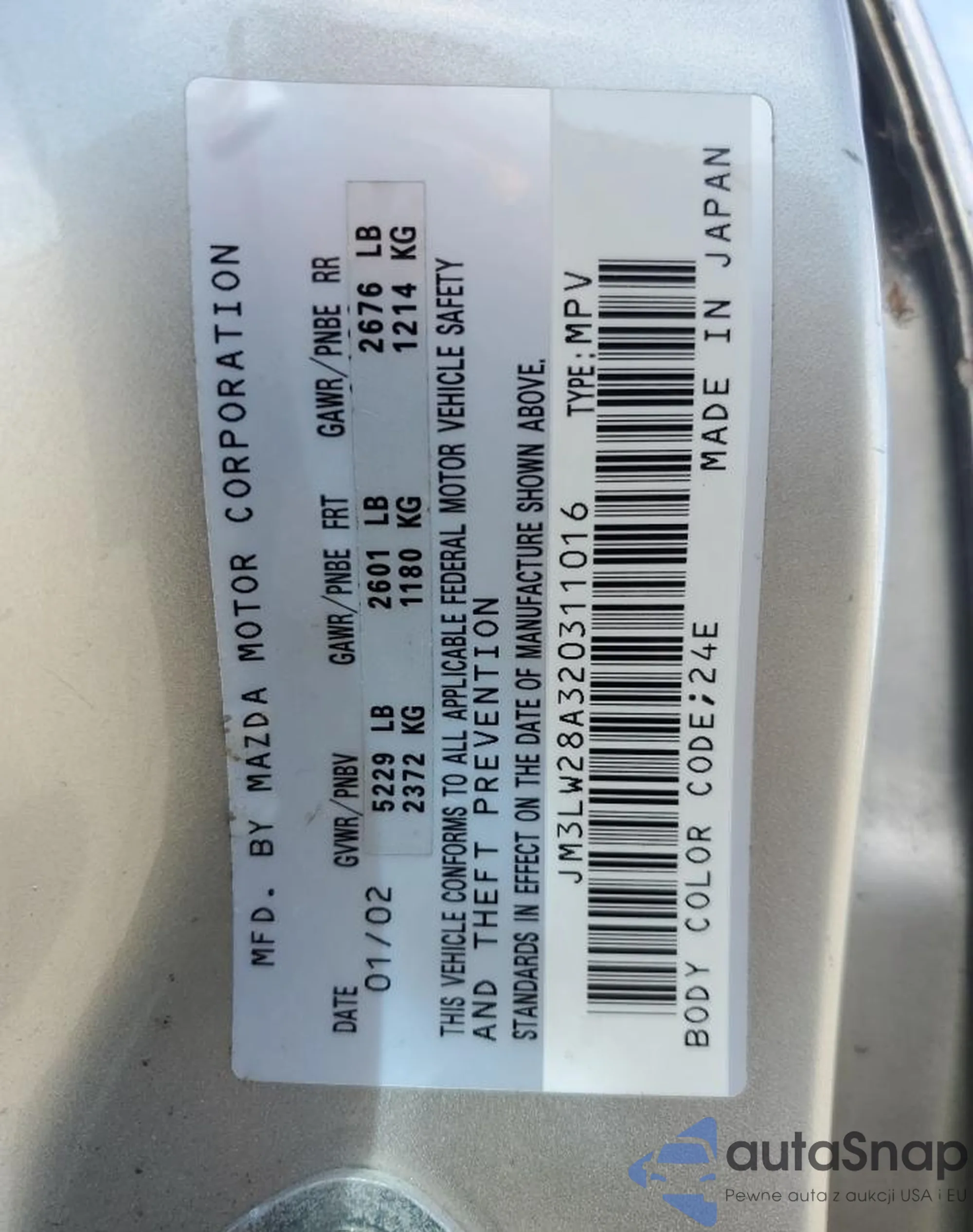 VIN: JM3LW28A320311016