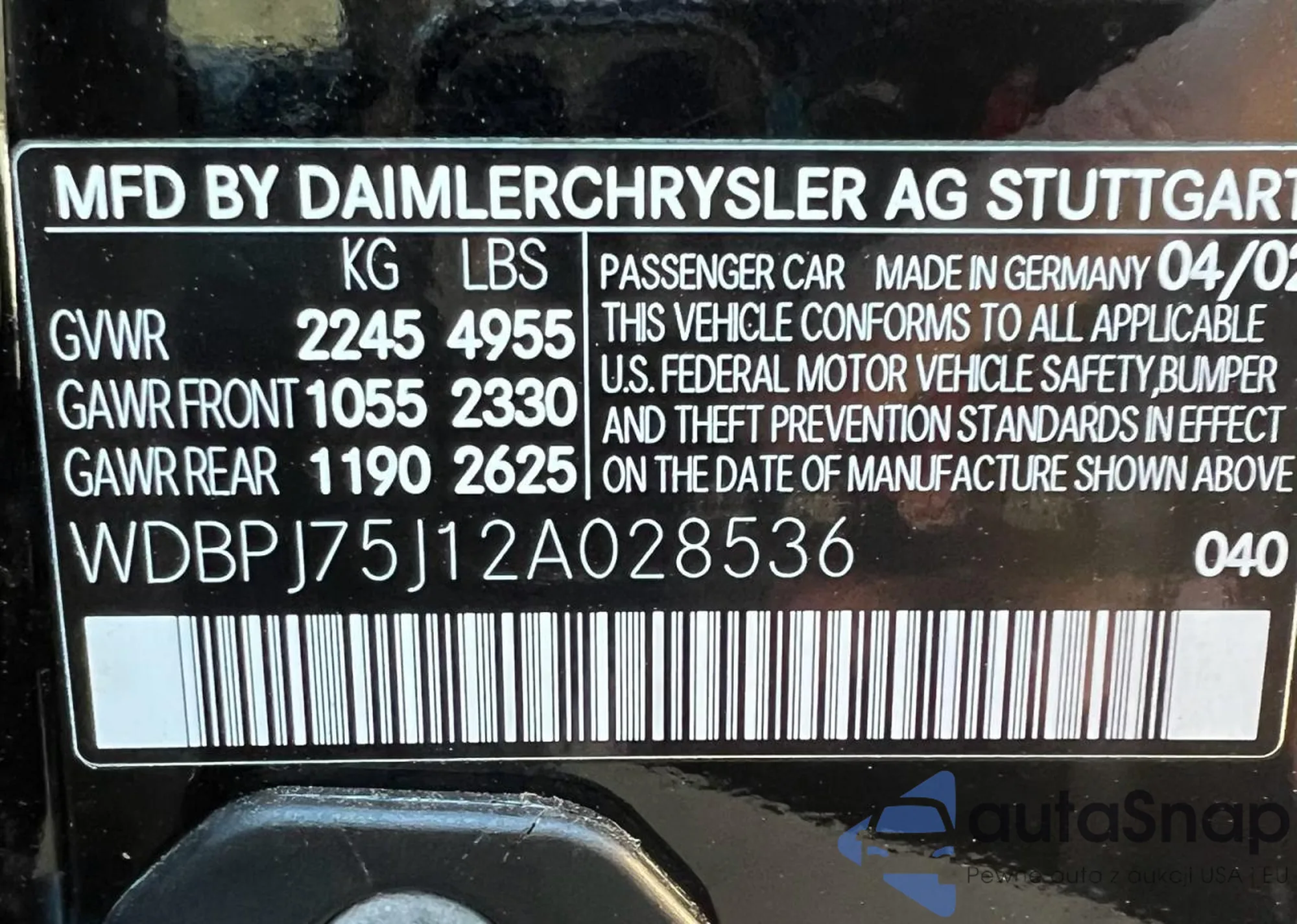 VIN: WDBPJ75J12A028536