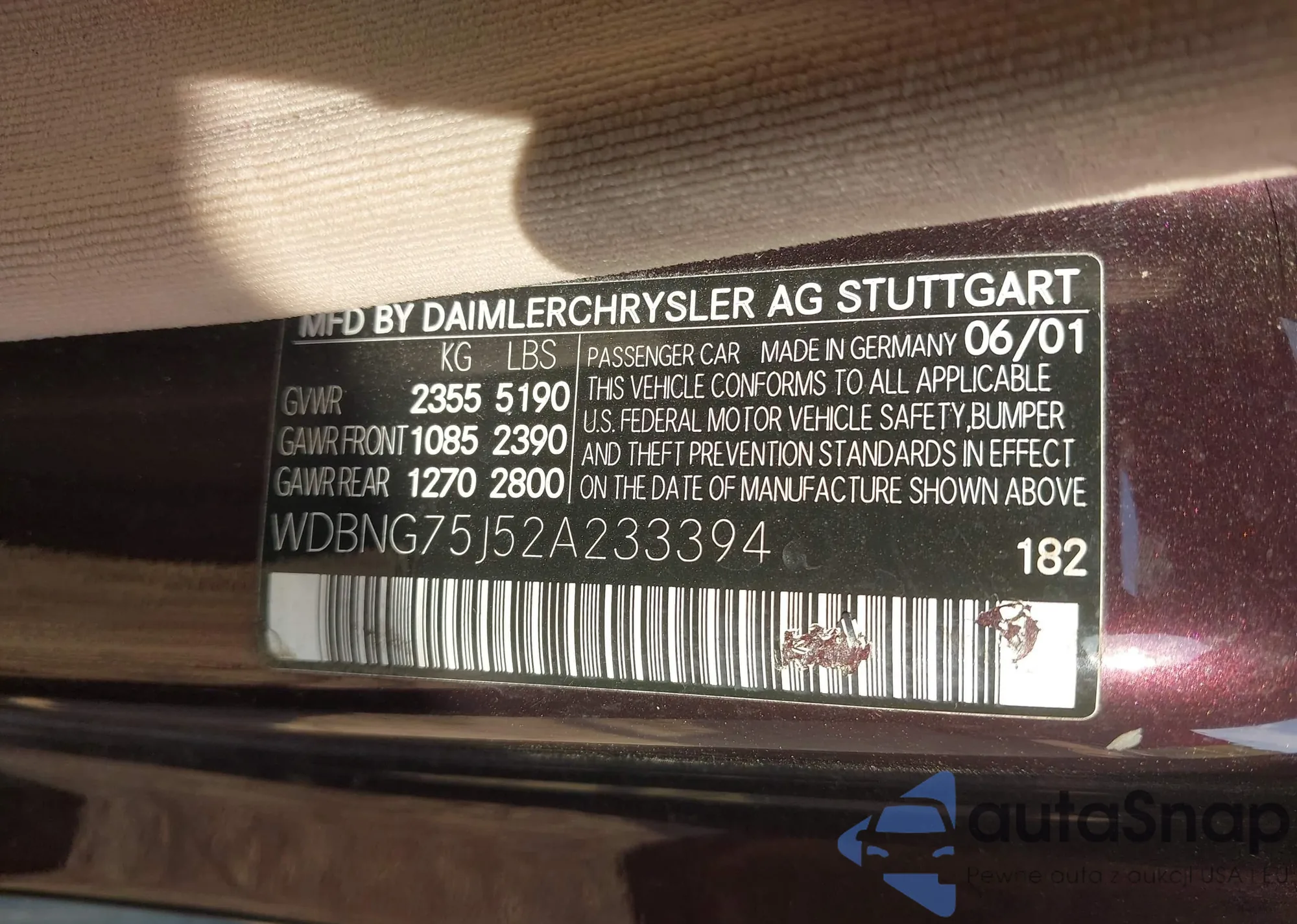 VIN: WDBNG75J52A233394