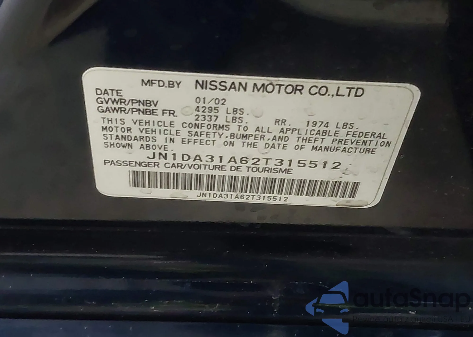 VIN: JN1DA31A62T315512