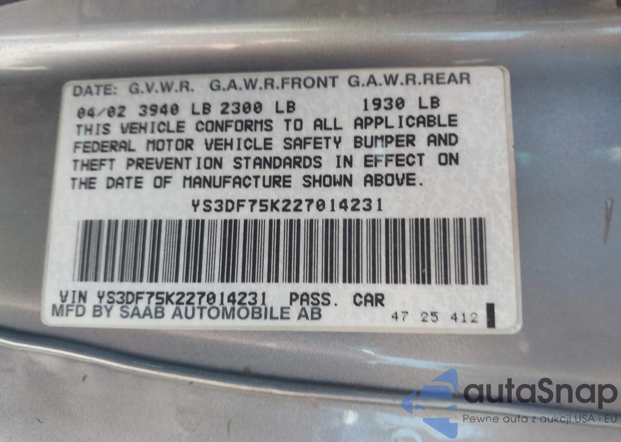 VIN: YS3DF75K227014231