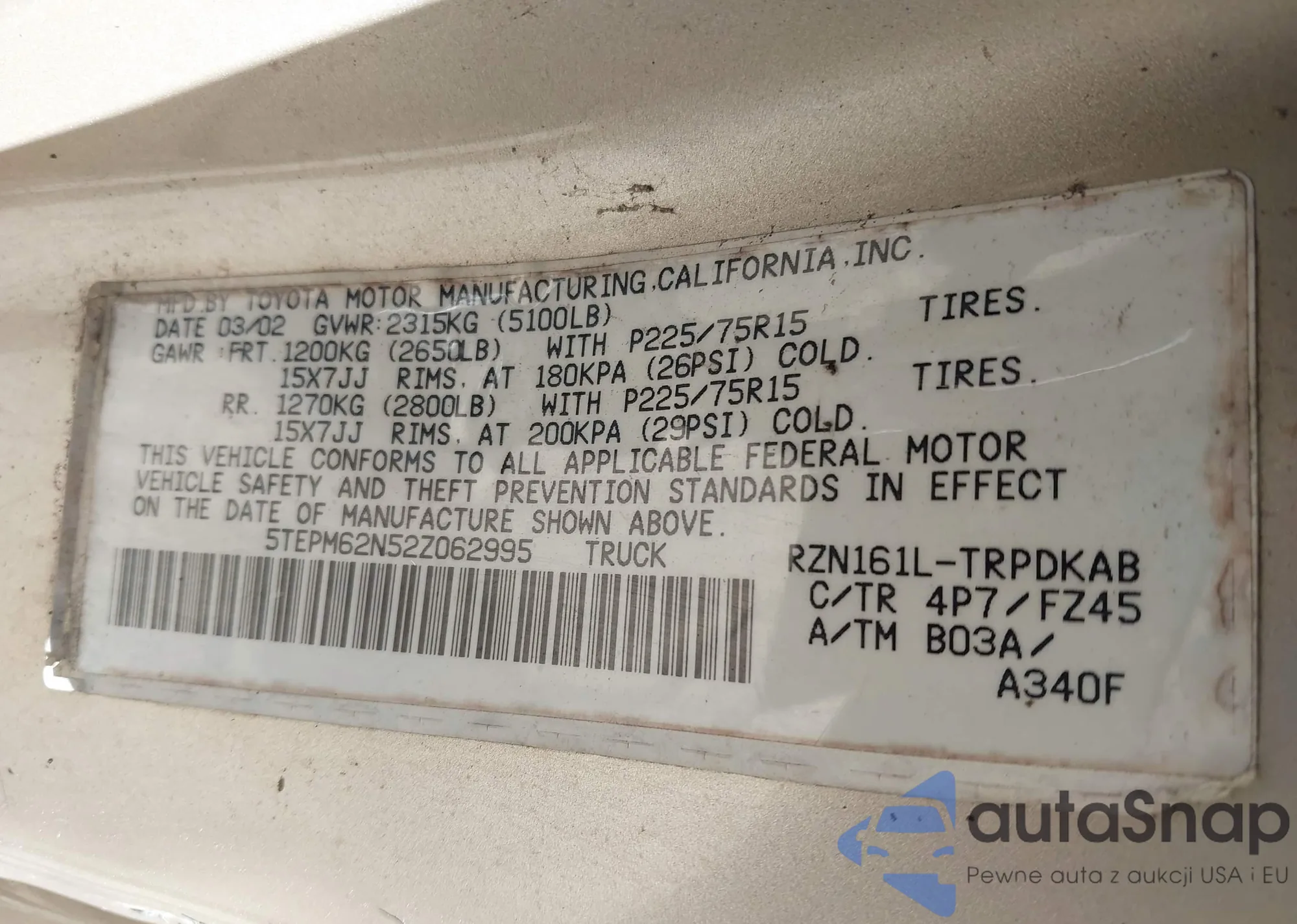VIN: 5TEPM62N52Z062995