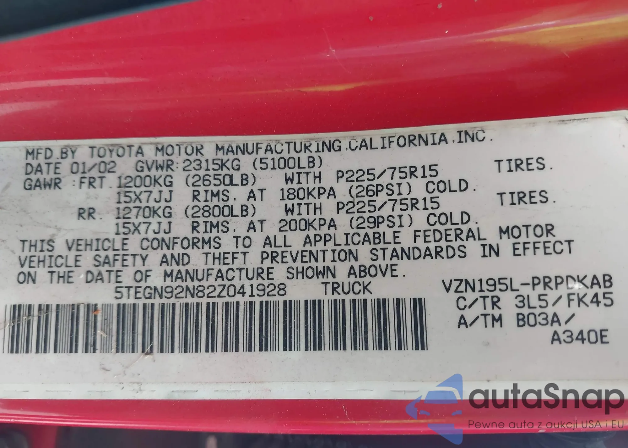 VIN: 5TEGN92N82Z041928