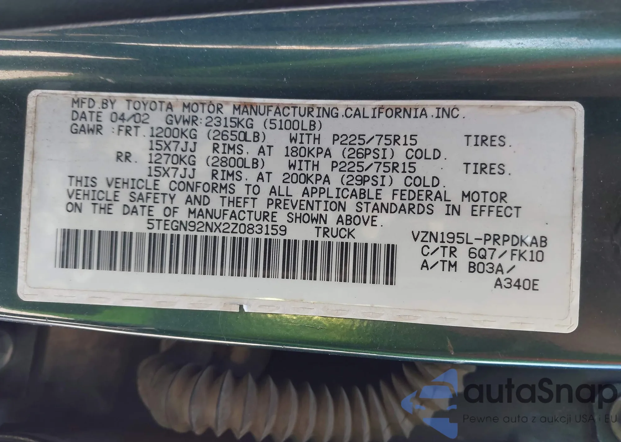 • VIN: 5TEGN92NX2Z083159