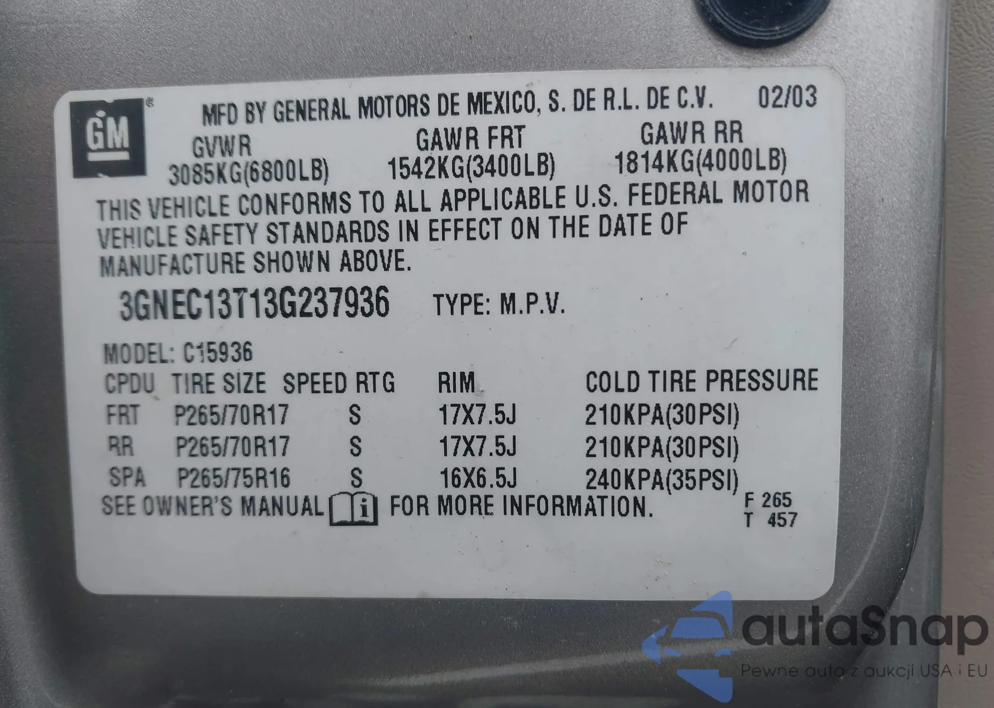 VIN: 3GNEC13T13G237936