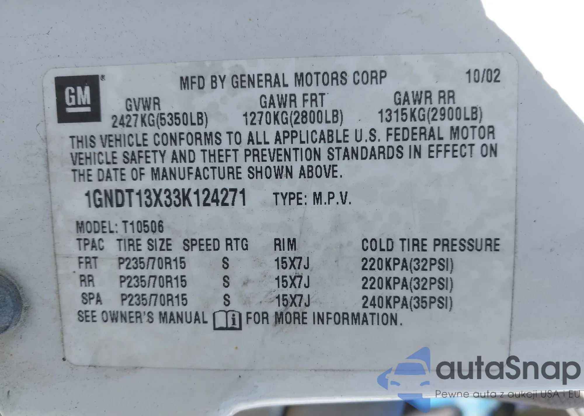 Samochód Chevrolet Blazer 2003 (VIN 1GNDT13X33K124271) ma dokumenty uniemożliwiające rejestrację. Mogą pojawić się trudności przy eksporcie i rejestracji. Skontaktuj się z ekspertami AutaSnap w celu znalezienia alternatywy.