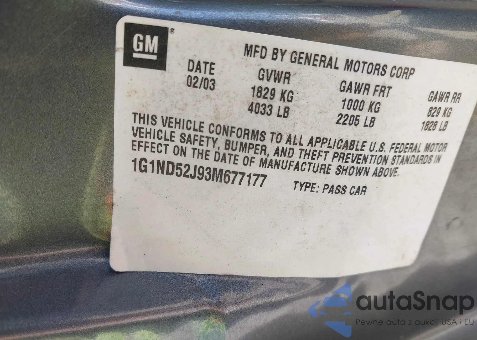 VIN: 1G1ND52J93M677177