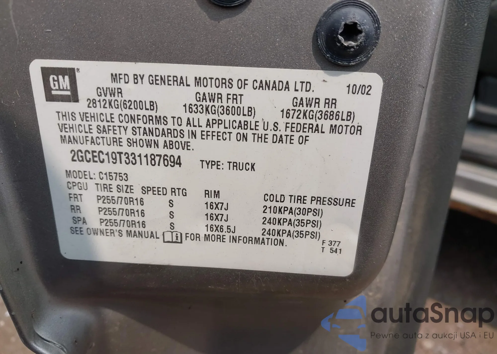 VIN: 2GCEC19T331187694