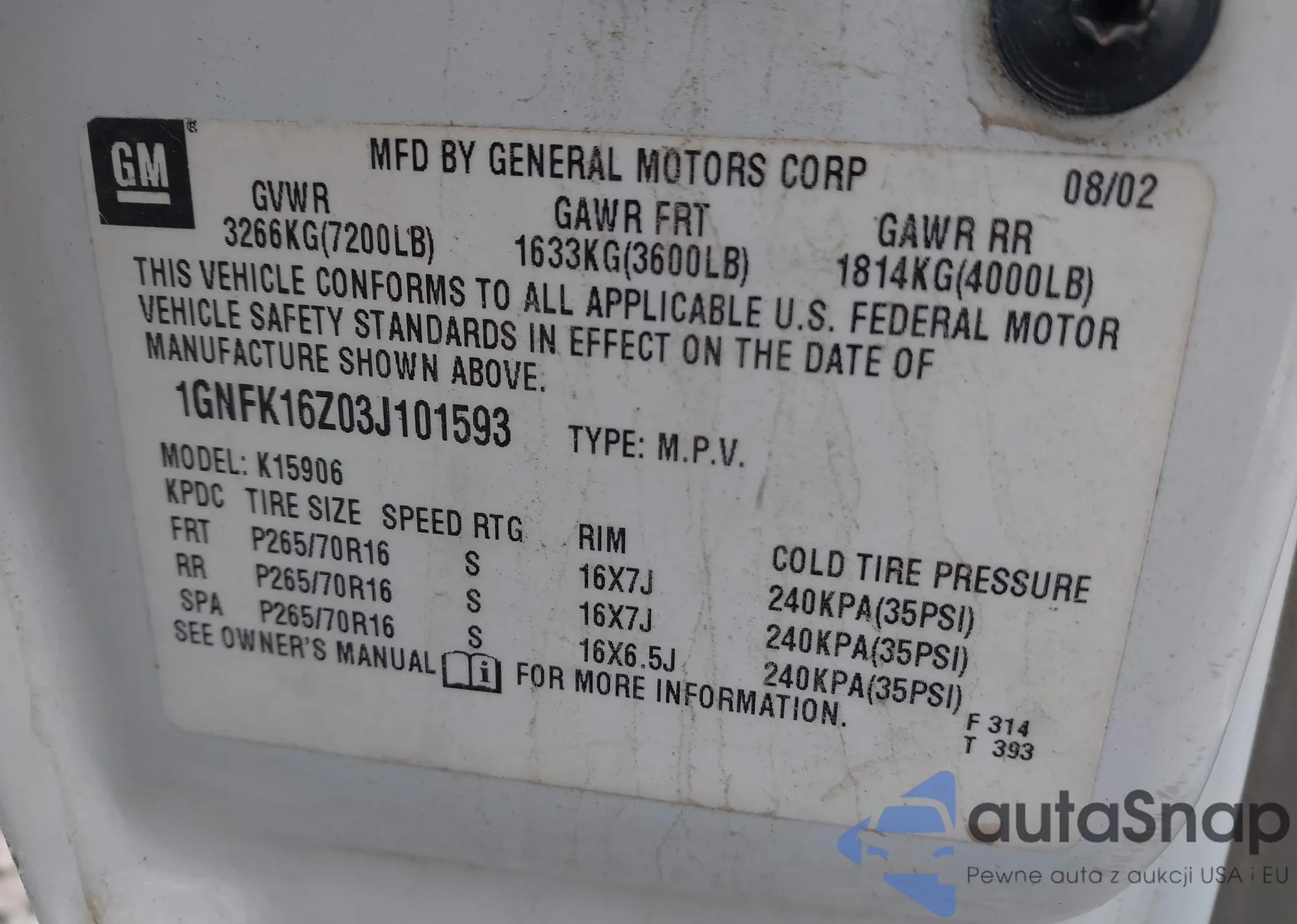 Samochód Chevrolet Express 2003 (VIN 1GNFK16Z03J101593) był już licytowany 1 razy i/lub sprzedaje go niezweryfikowany sprzedawca. Zalecamy raport Carfax i potwierdzenie możliwości rejestracji pojazdu przed zakupem.