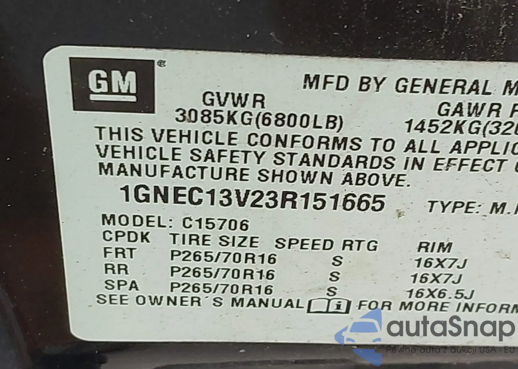VIN: 1GNEC13V23R151665