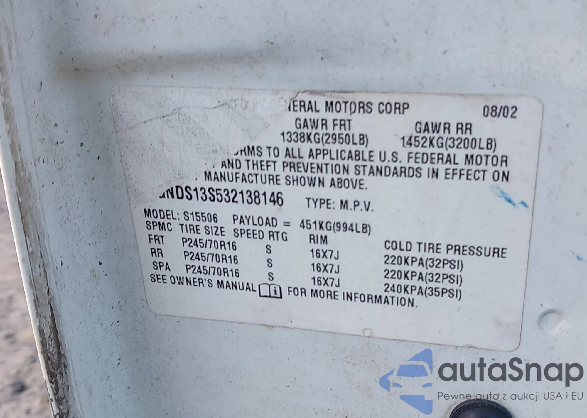 VIN: 1GNDS13S532138146