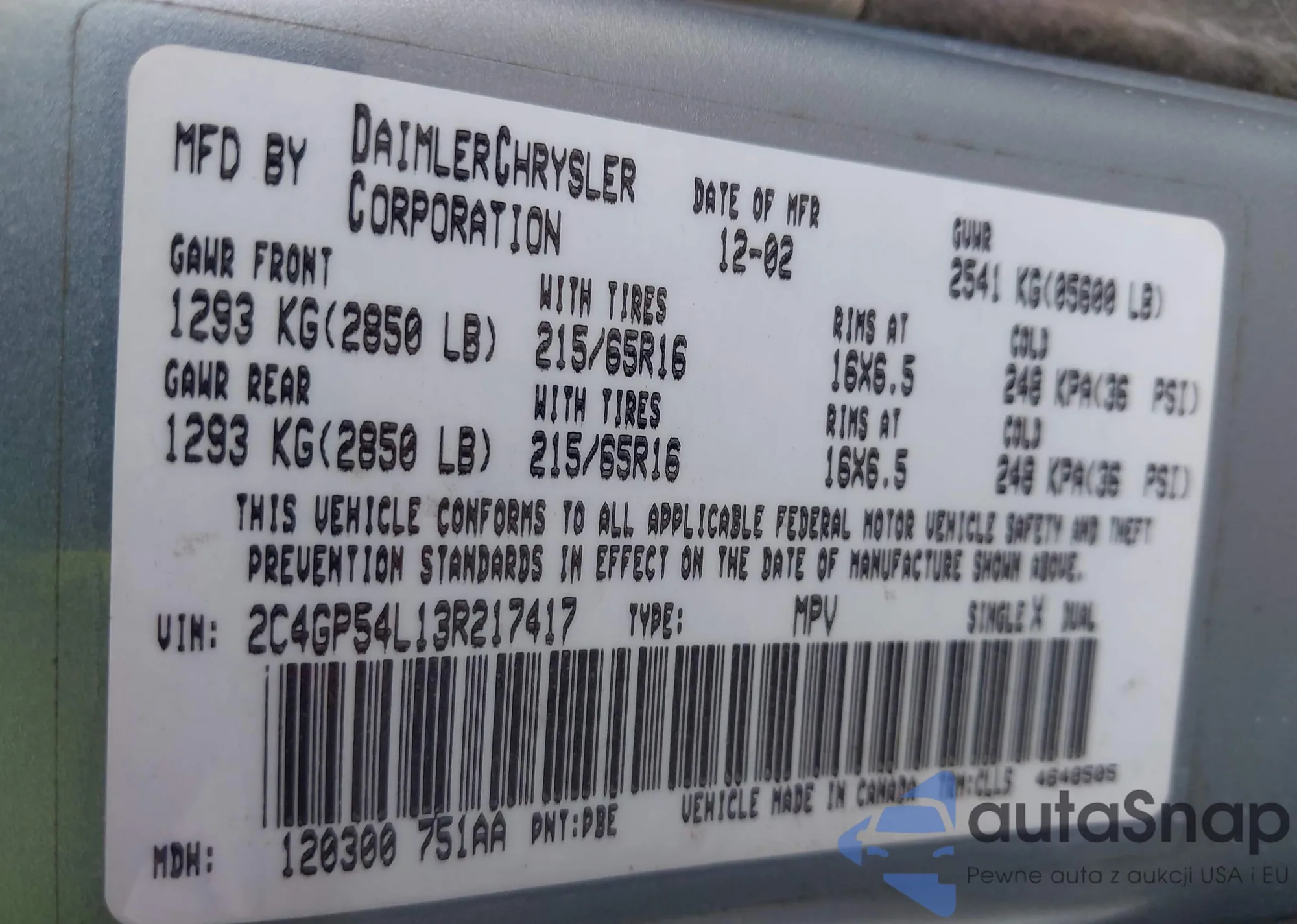 VIN: 2C4GP54L13R217417