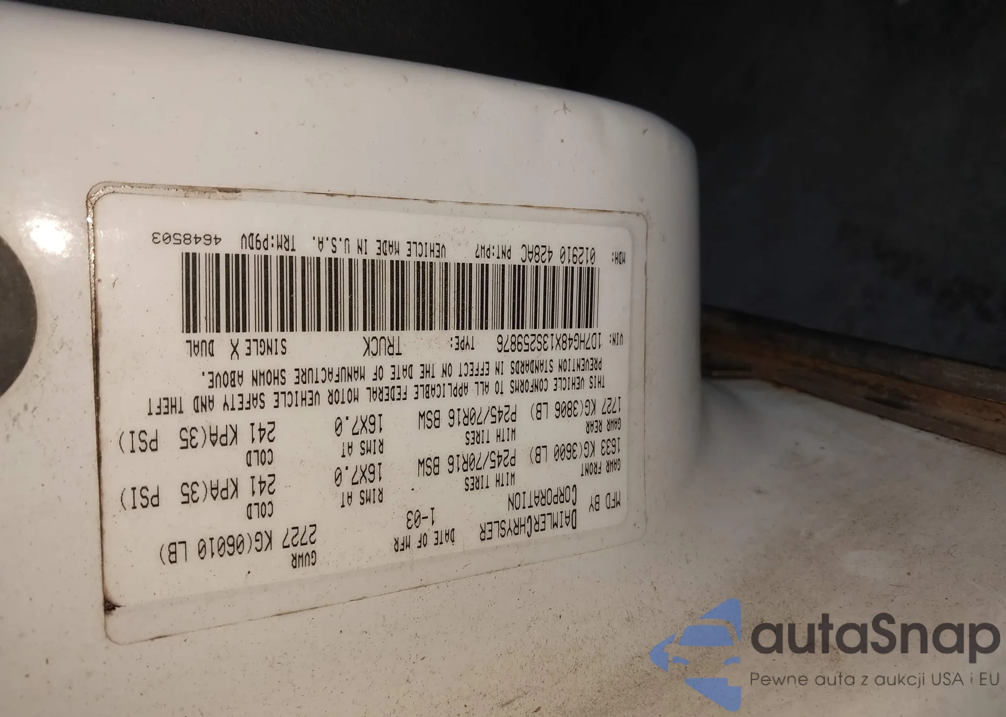 Samochód Dodge Dakota 2003 (VIN 1D7HG48X13S259876) nie był wcześniej licytowany. Dokumenty są czyste, przebieg odpowiada lub jest niższy niż średnia rynku. Sprzedaje go firma ubezpieczeniowa – polecamy zakup. Dostawa do portu zajmie ok. 6–8 tygodni.