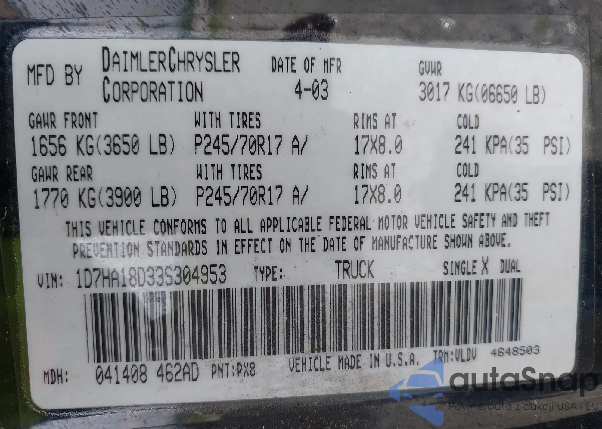 • VIN: 1D7HA18D33S304953
