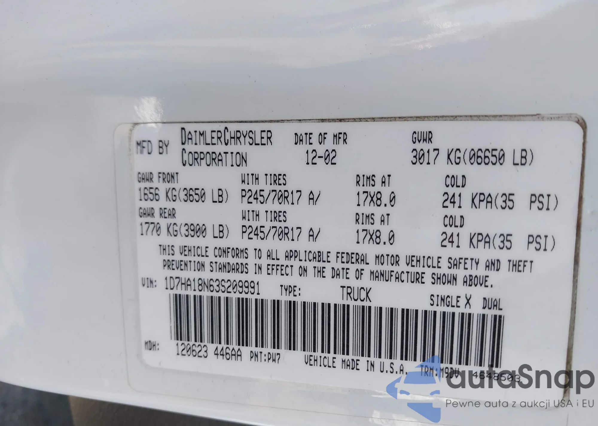 VIN: 1D7HA18N63S209991
