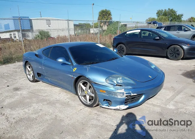 Samochód Ferrari 360 2003 (VIN ZFFYU51A030130541) nie był wcześniej licytowany. Dokumenty są czyste, przebieg odpowiada lub jest niższy niż średnia rynku. Sprzedaje go firma ubezpieczeniowa – polecamy zakup. Dostawa do portu zajmie ok. 6–8 tygodni.