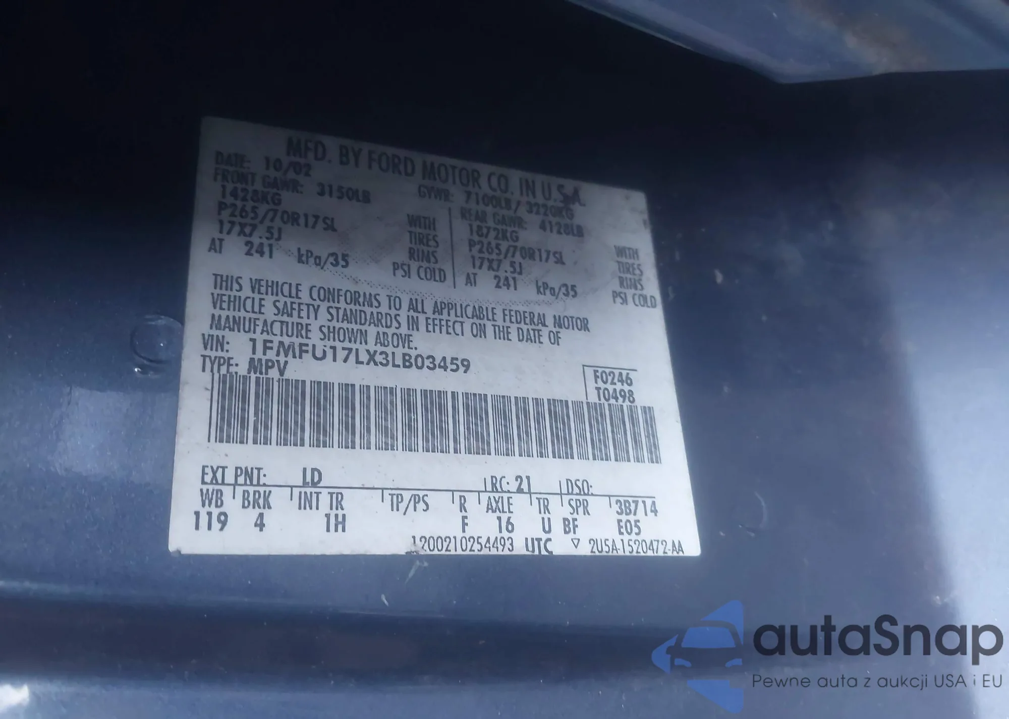 • VIN: 1FMFU17LX3LB03459