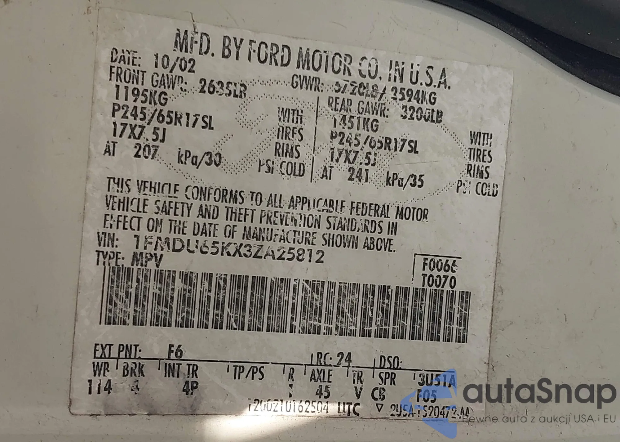 VIN: 1FMDU65KX3ZA25812
