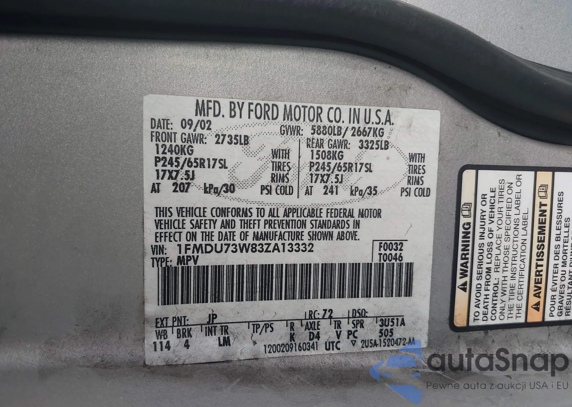 VIN: 1FMDU73W83ZA13332