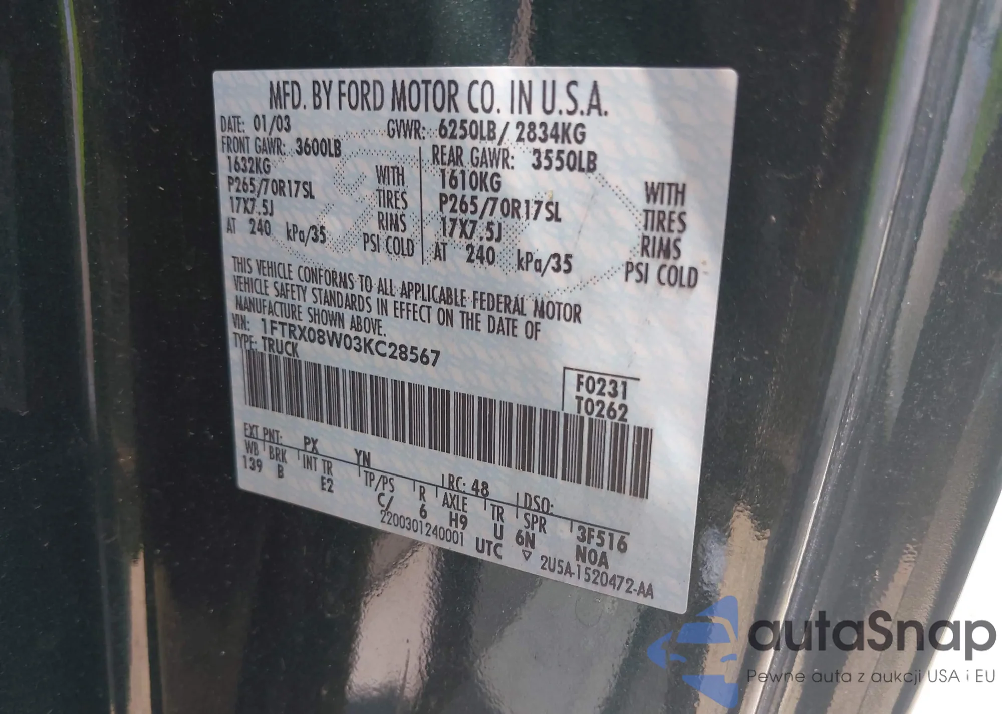 VIN: 1FTRX08W03KC28567