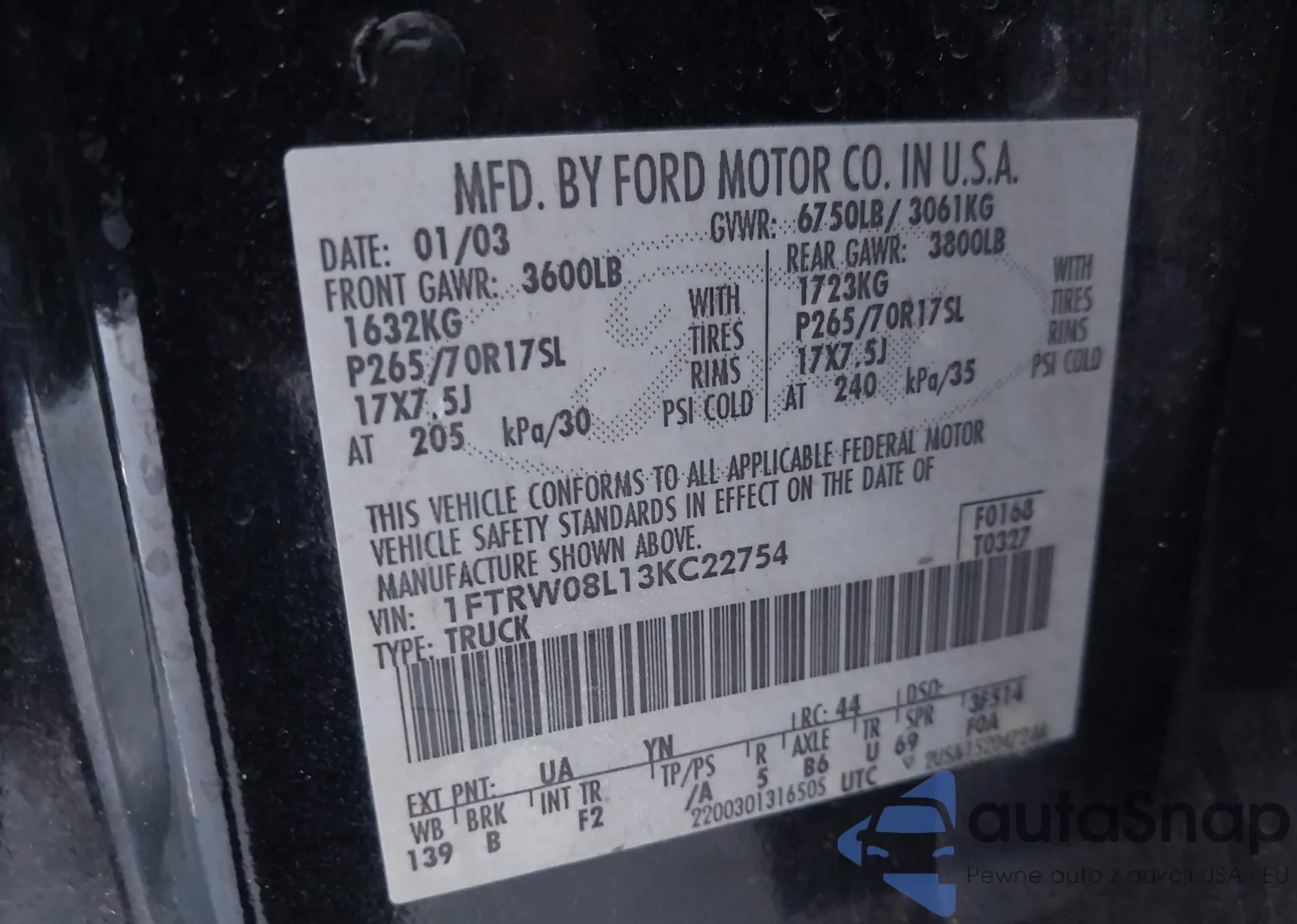 1FTRW08L13KC22754 IAAI