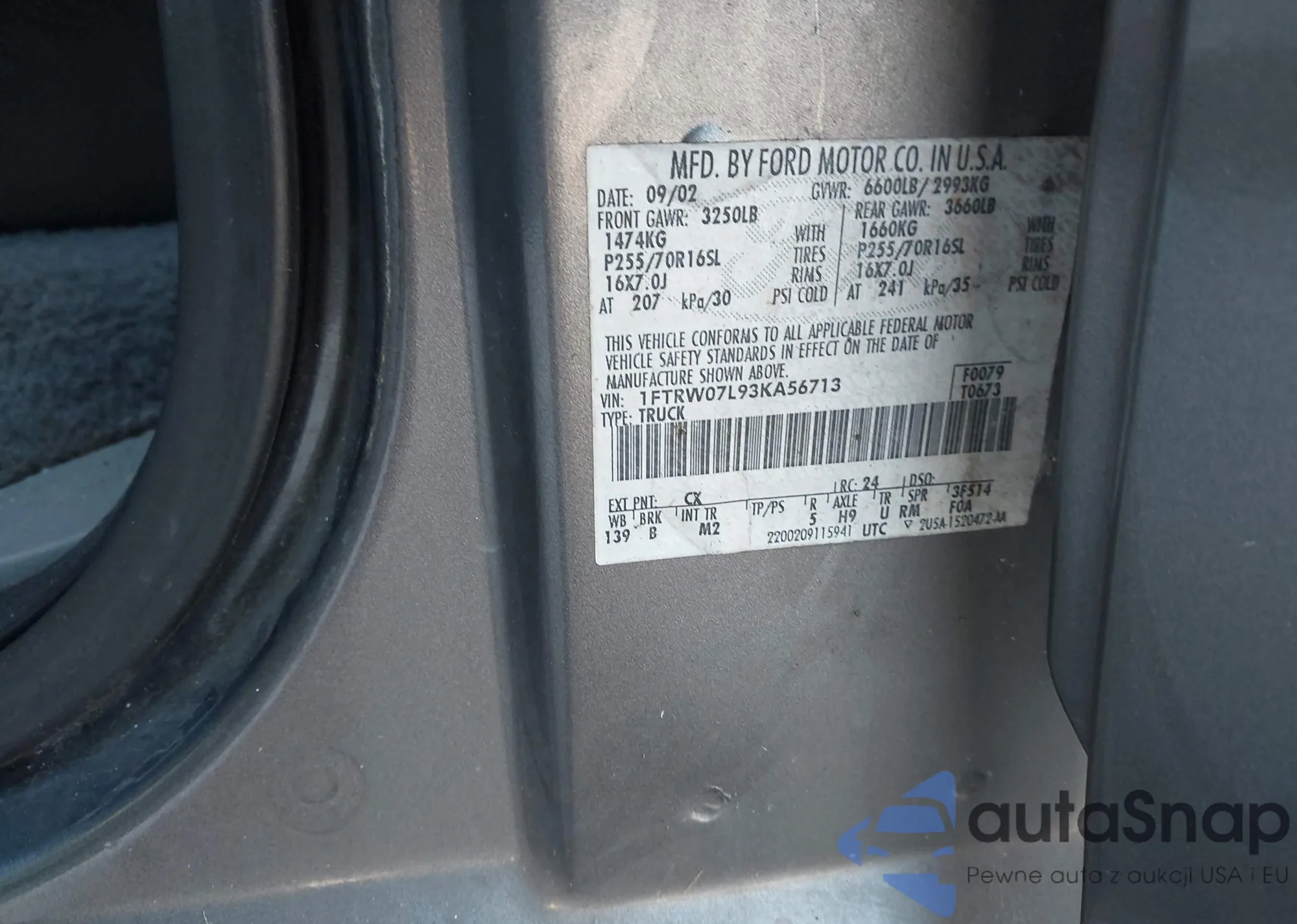 VIN: 1FTRW07L93KA56713