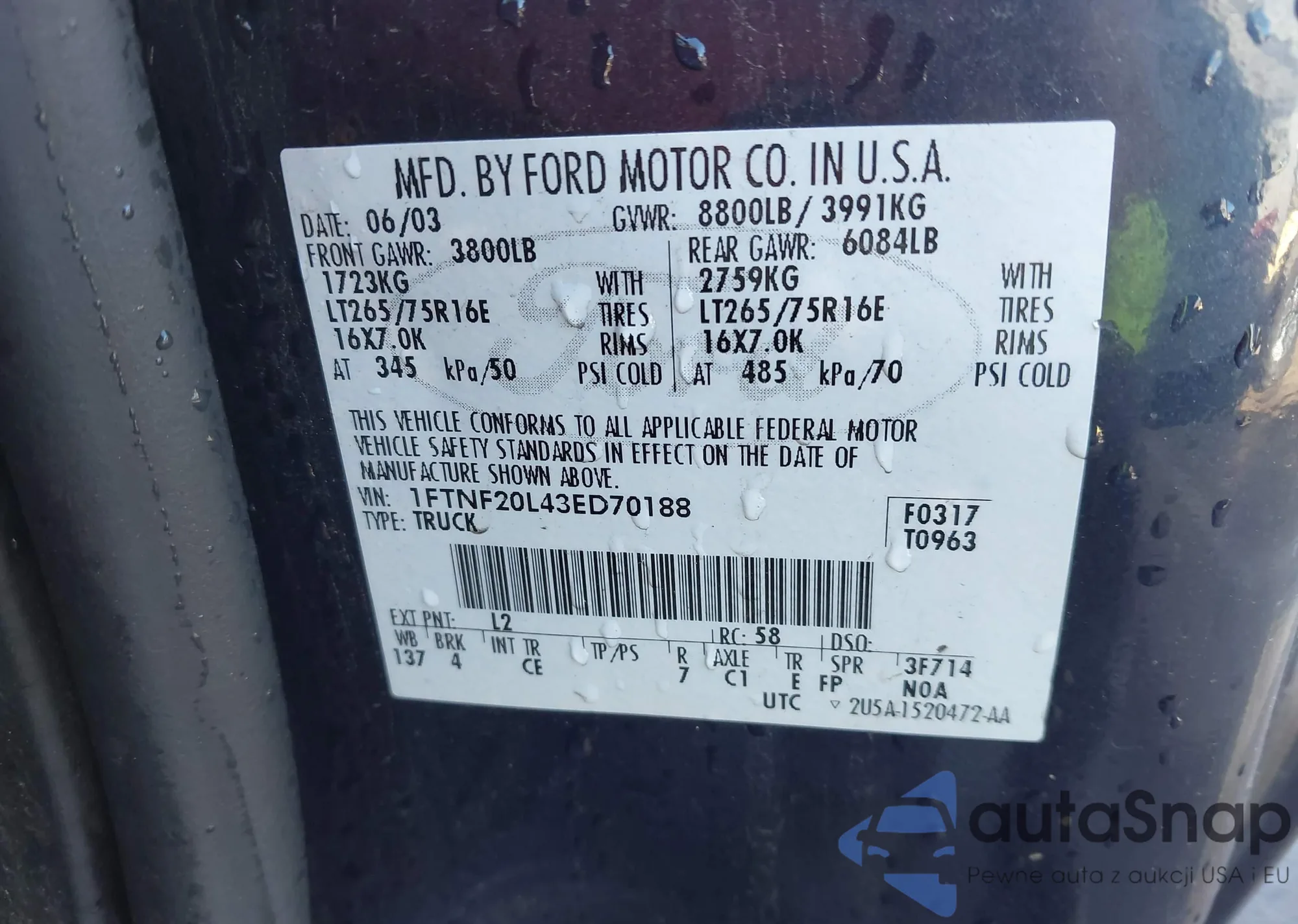 VIN: 1FTNF20L43ED70188