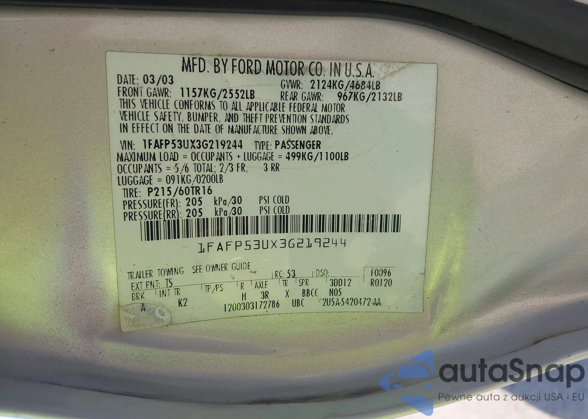 VIN: 1FAFP53UX3G219244