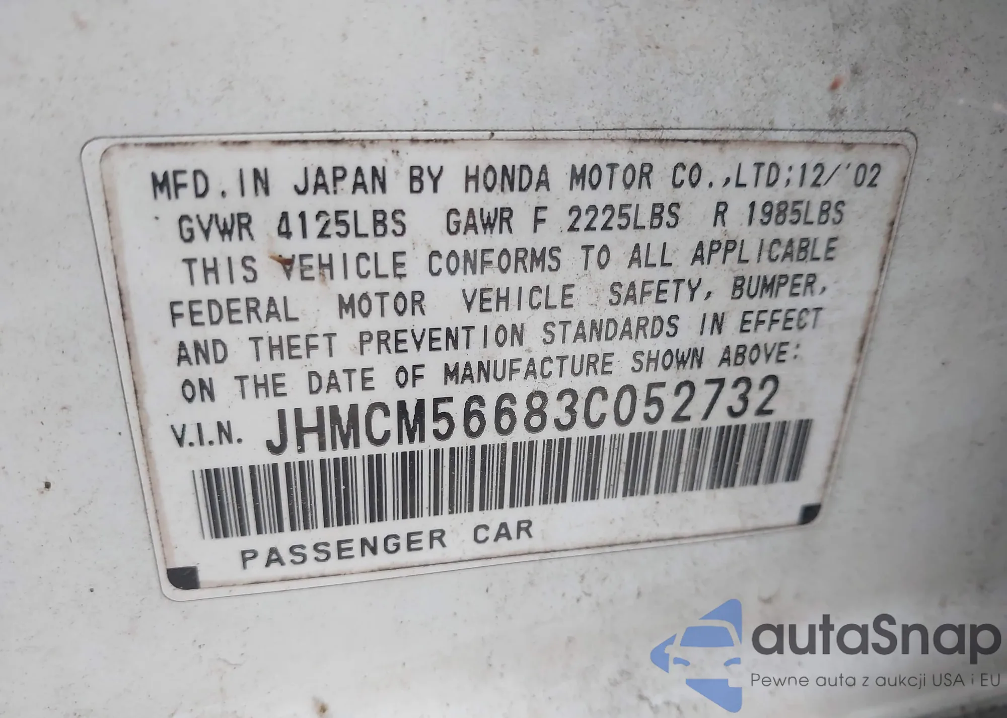 VIN: JHMCM56683C052732