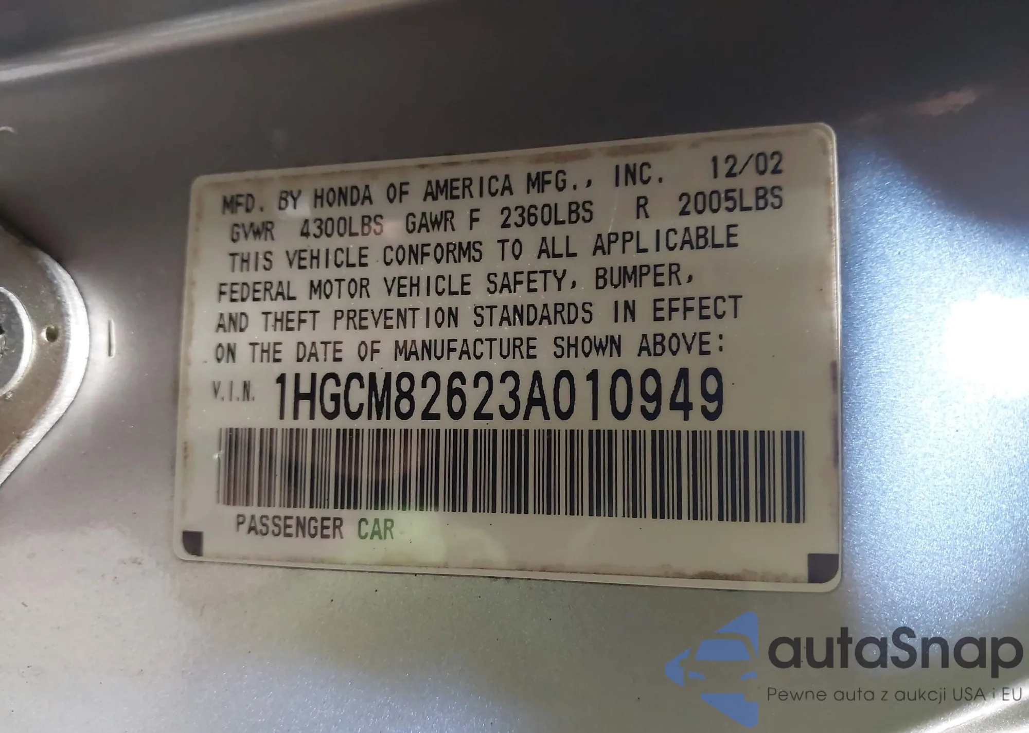 VIN: 1HGCM82623A010949