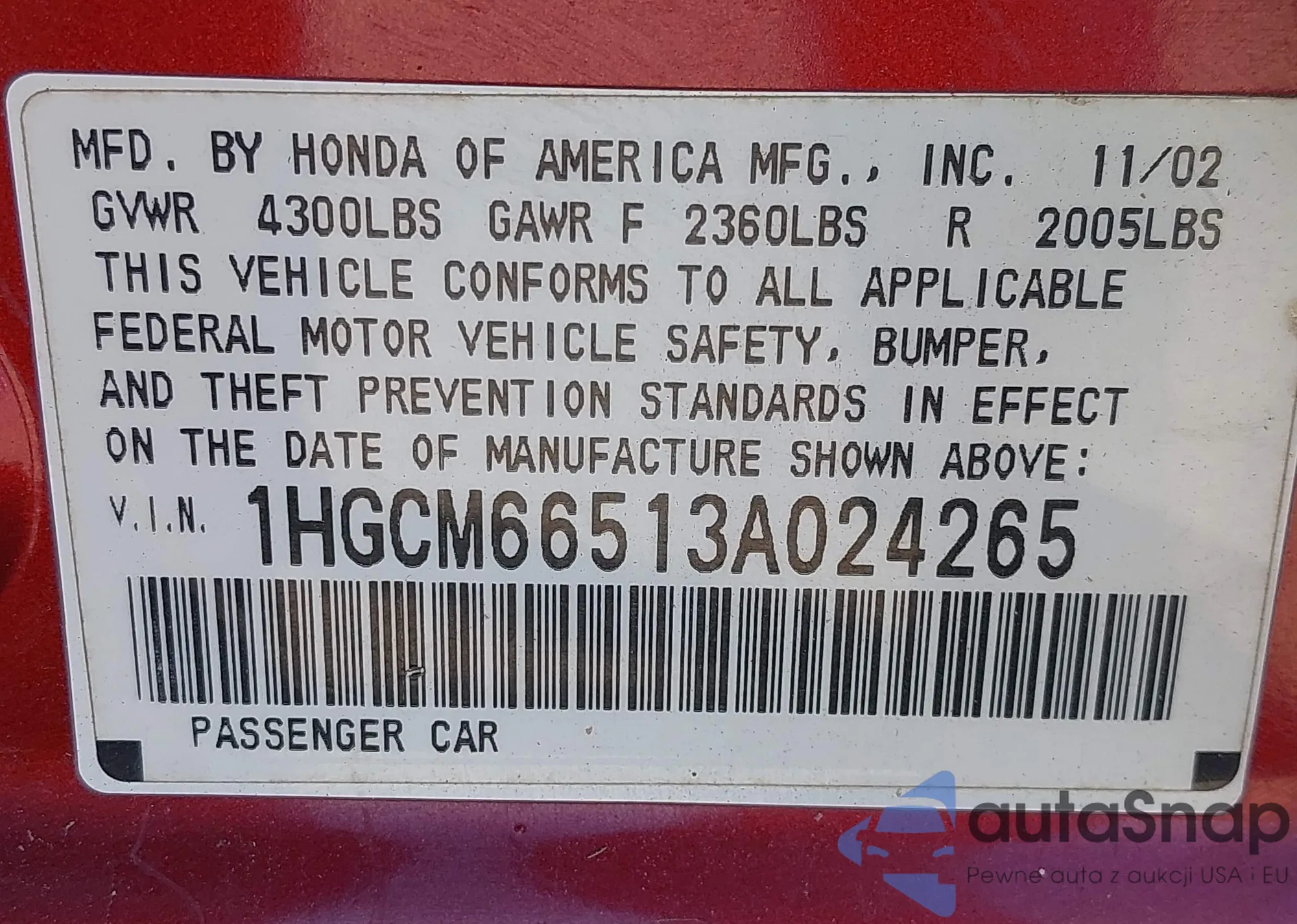 • VIN: 1HGCM66513A024265