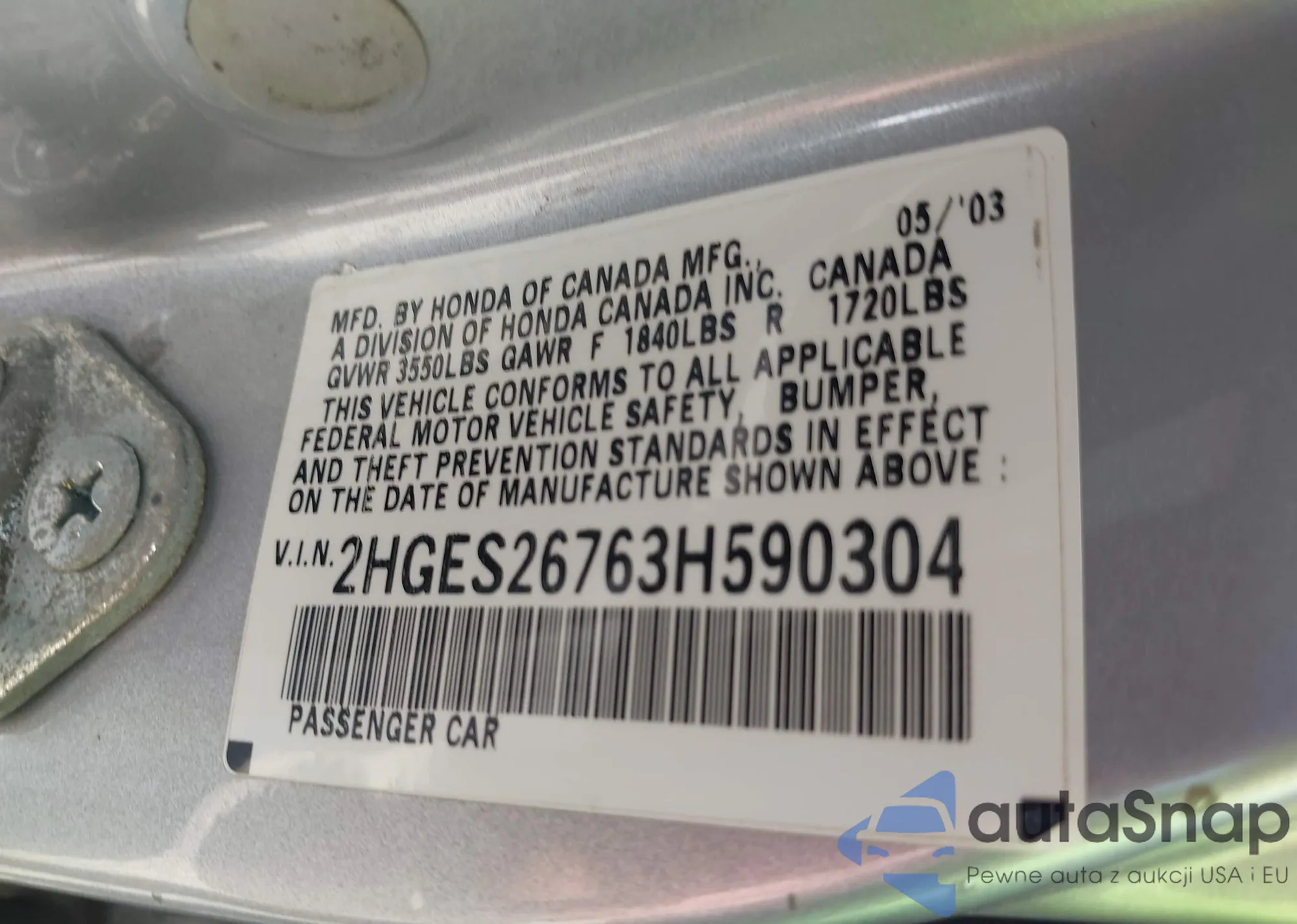 VIN: 2HGES26763H590304