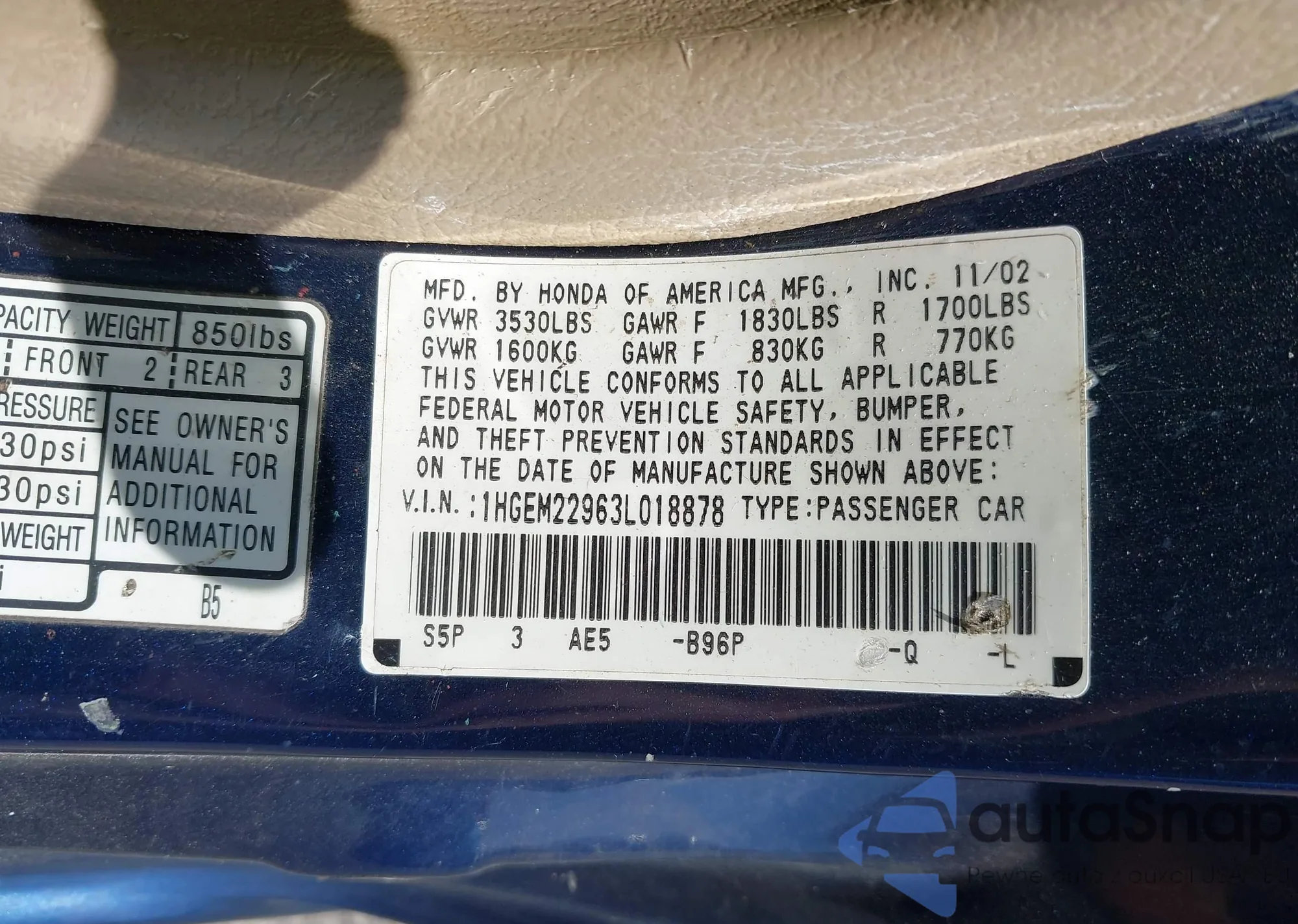 VIN: 1HGEM22963L018878