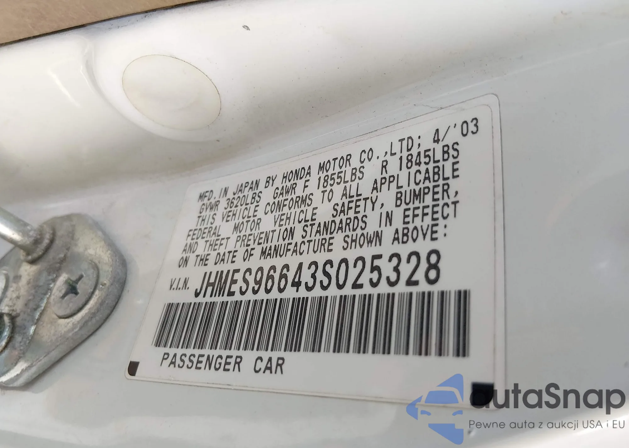 • VIN: JHMES96643S025328