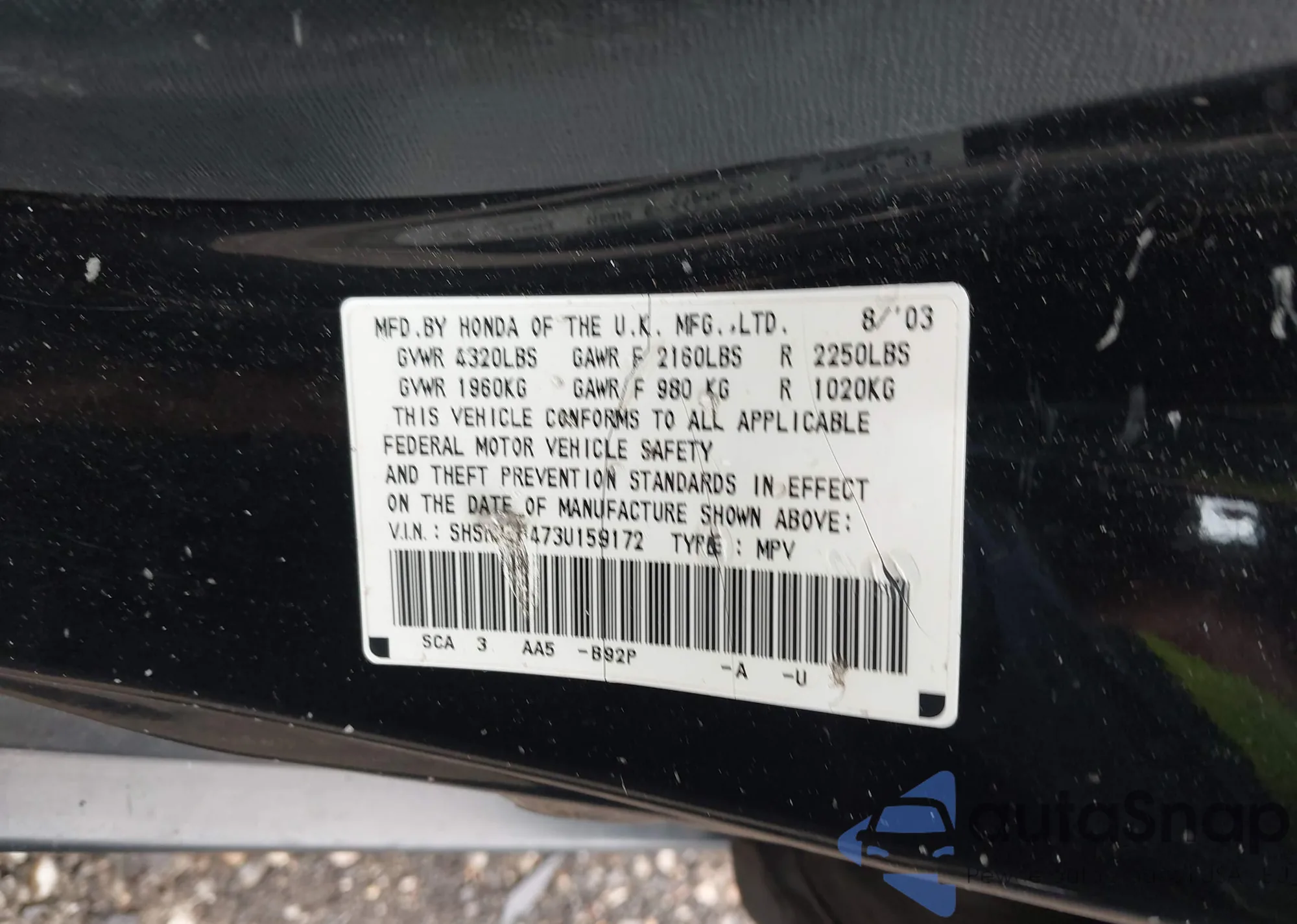 VIN: SHSRD78473U159172