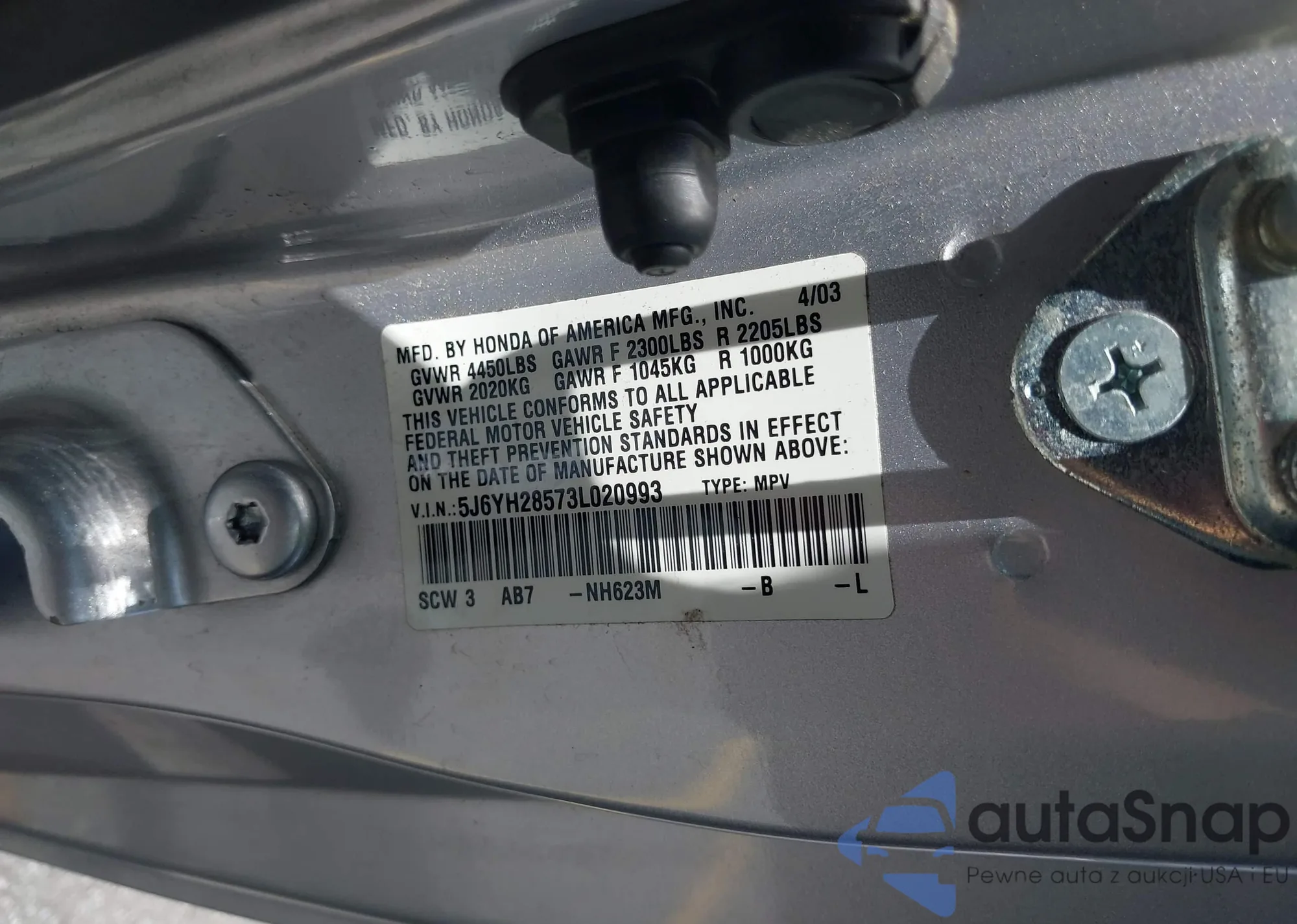 VIN: 5J6YH28573L020993