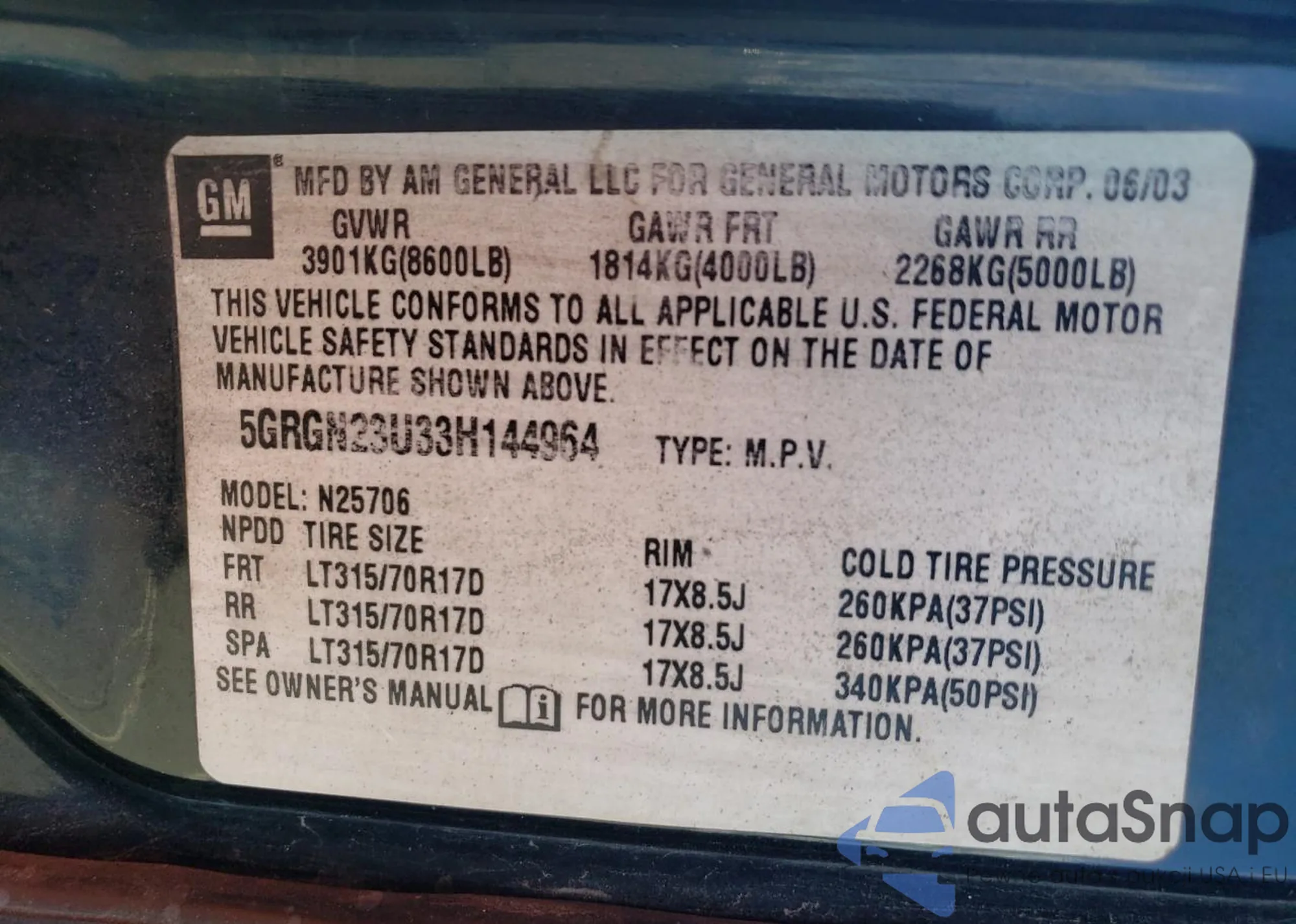 VIN: 5GRGN23U33H144964