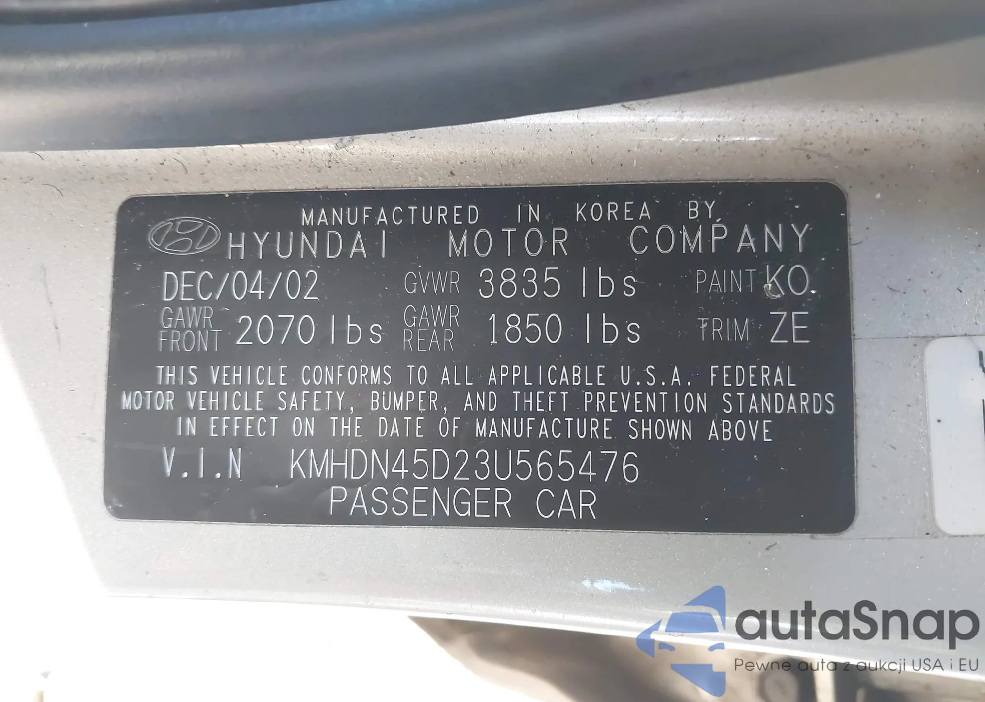VIN: KMHDN45D23U565476