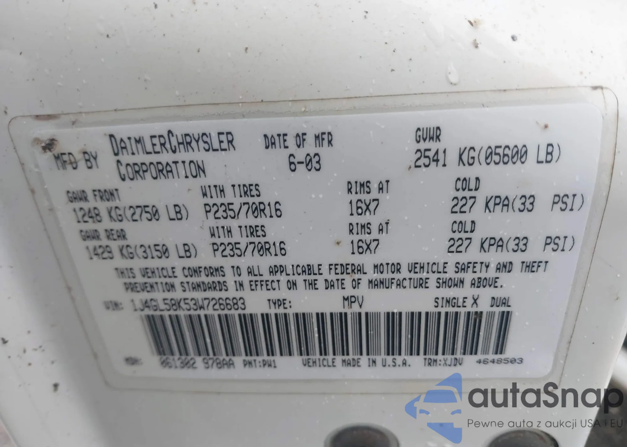VIN: 1J4GL58K53W726683