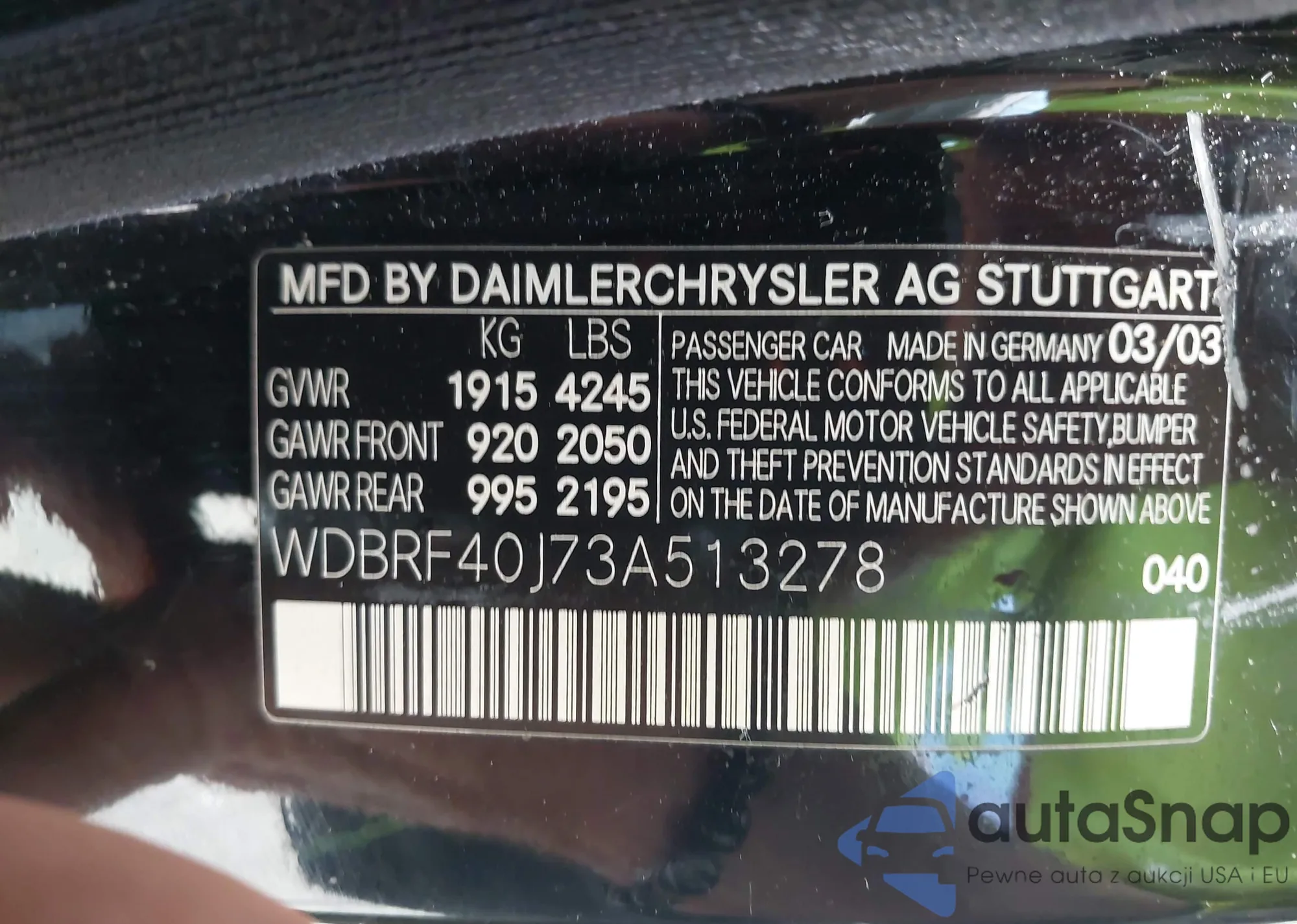 VIN: WDBRF40J73A513278