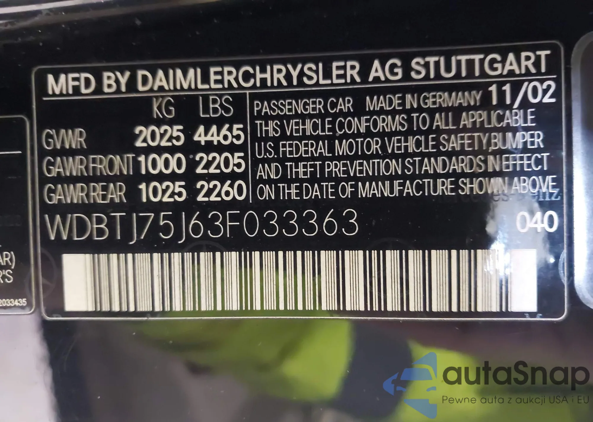Samochód Mercedes-Benz CLK-klasse 2003 (VIN WDBTJ75J63F033363) nie był wcześniej licytowany. Dokumenty są czyste, przebieg odpowiada lub jest niższy niż średnia rynku. Sprzedaje go firma ubezpieczeniowa – polecamy zakup. Dostawa do portu zajmie ok. 6–8 tygodni.