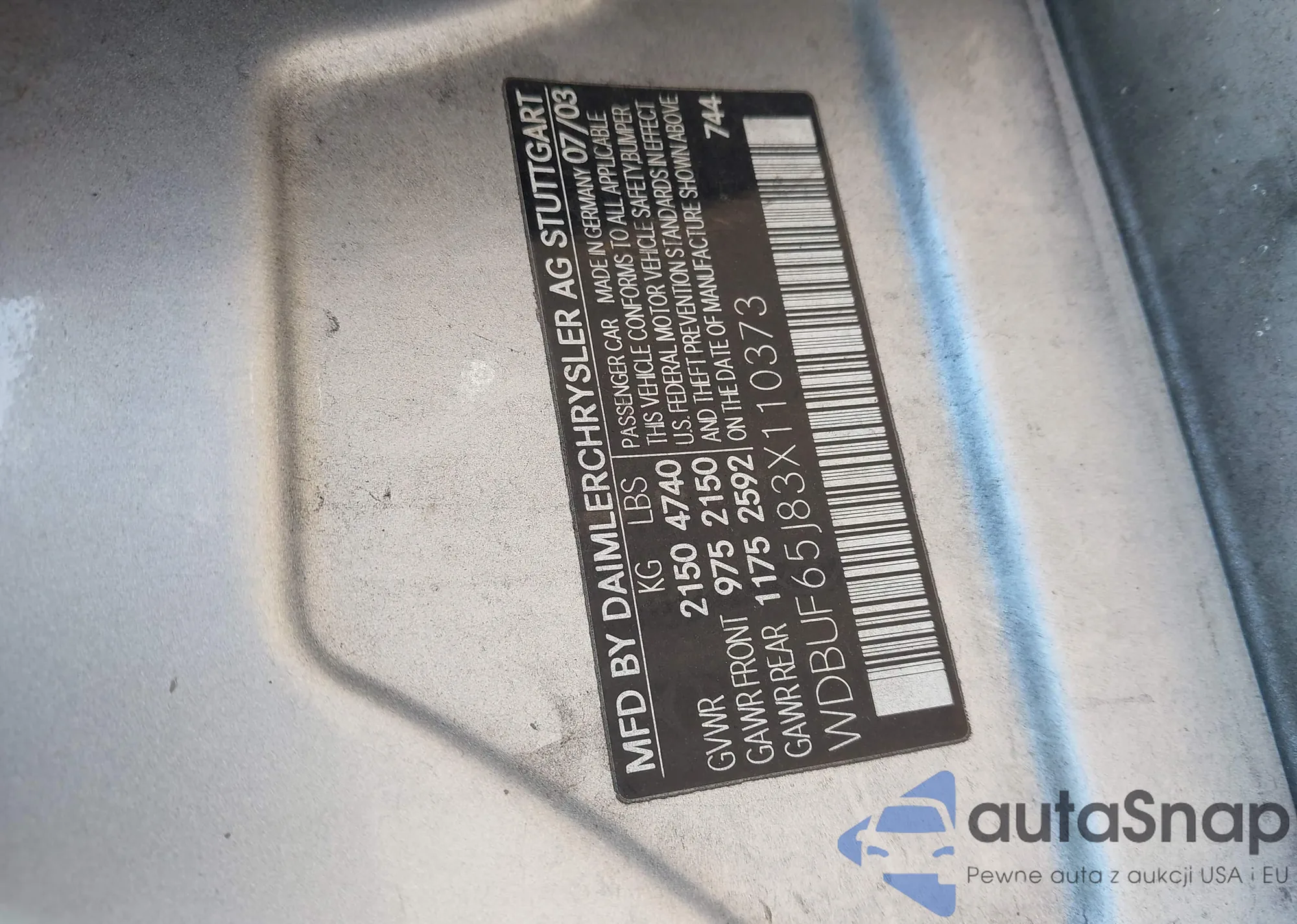 • VIN: WDBUF65J83X110373