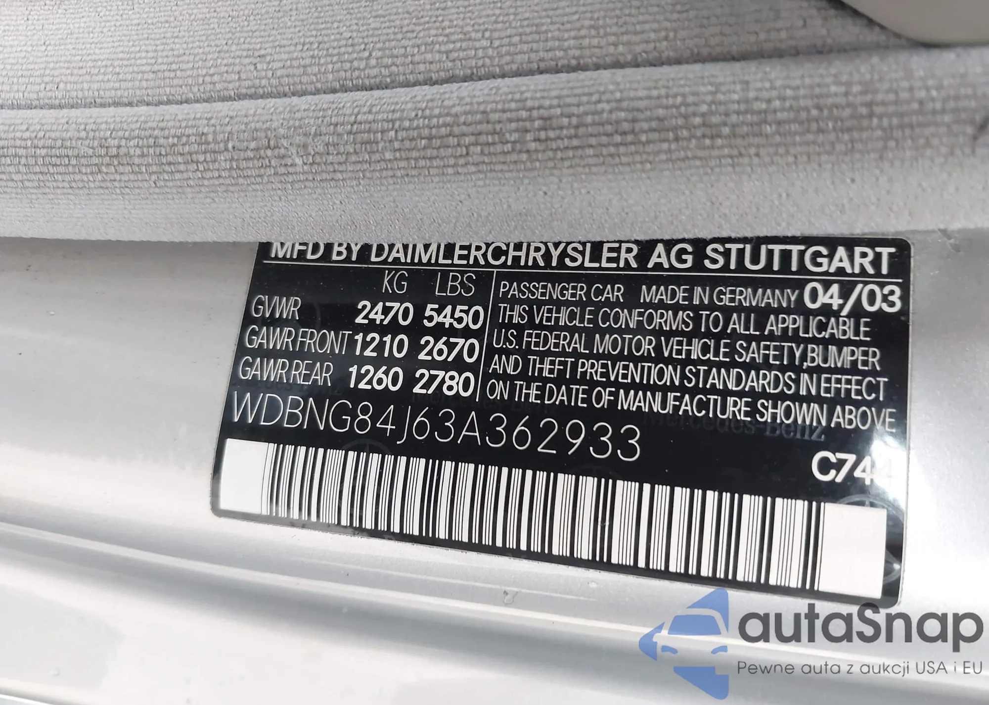 VIN: WDBNG84J63A362933