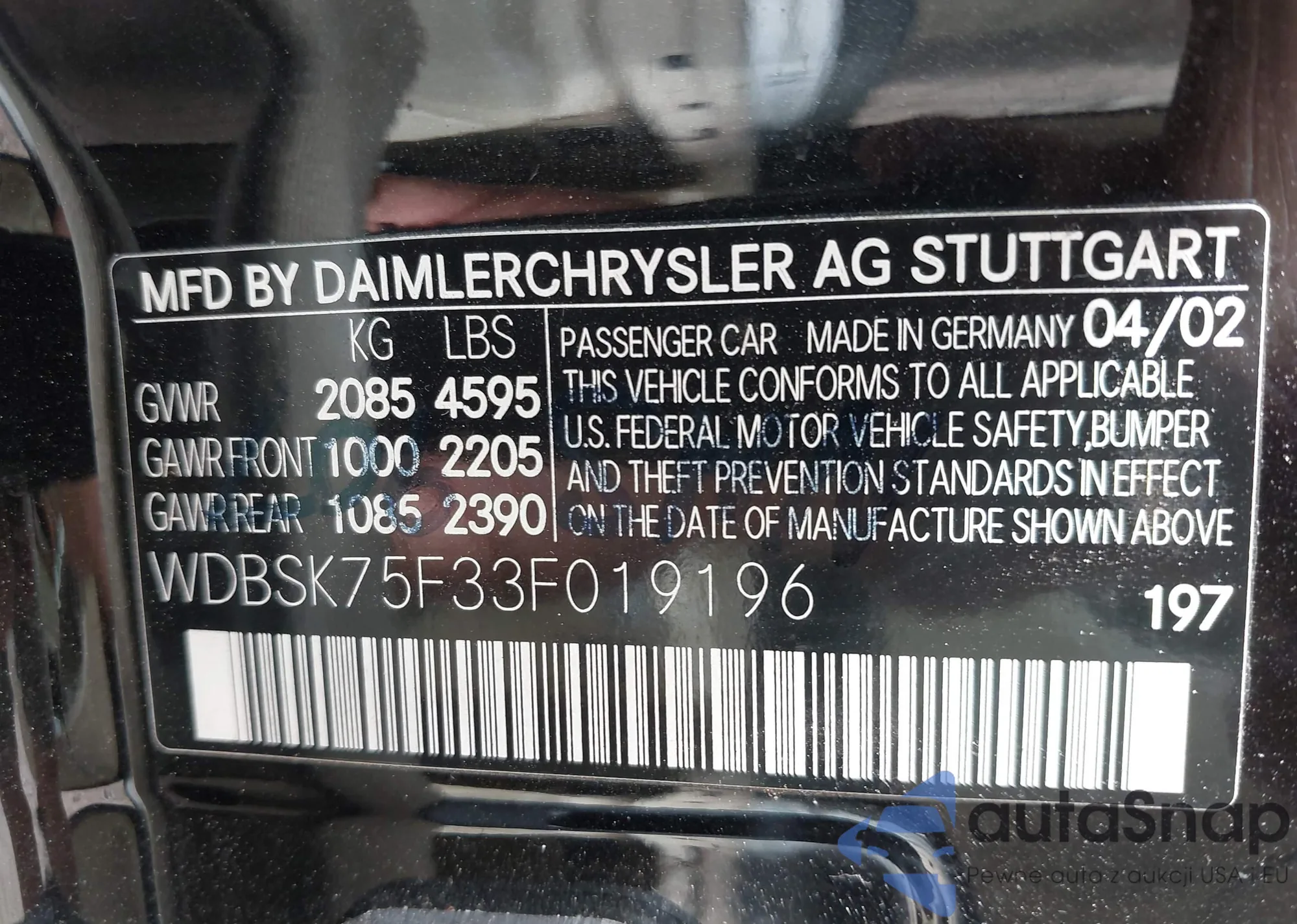 VIN: WDBSK75F33F019196