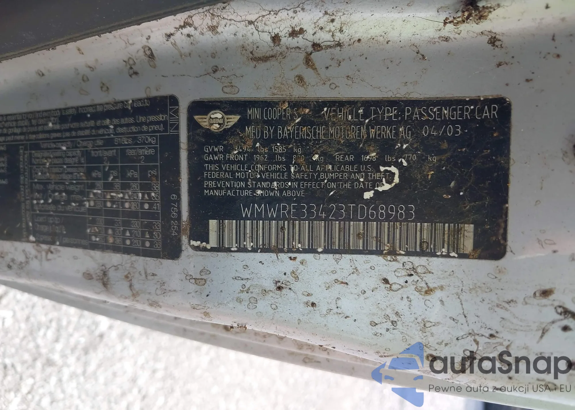 • VIN: WMWRE33423TD68983