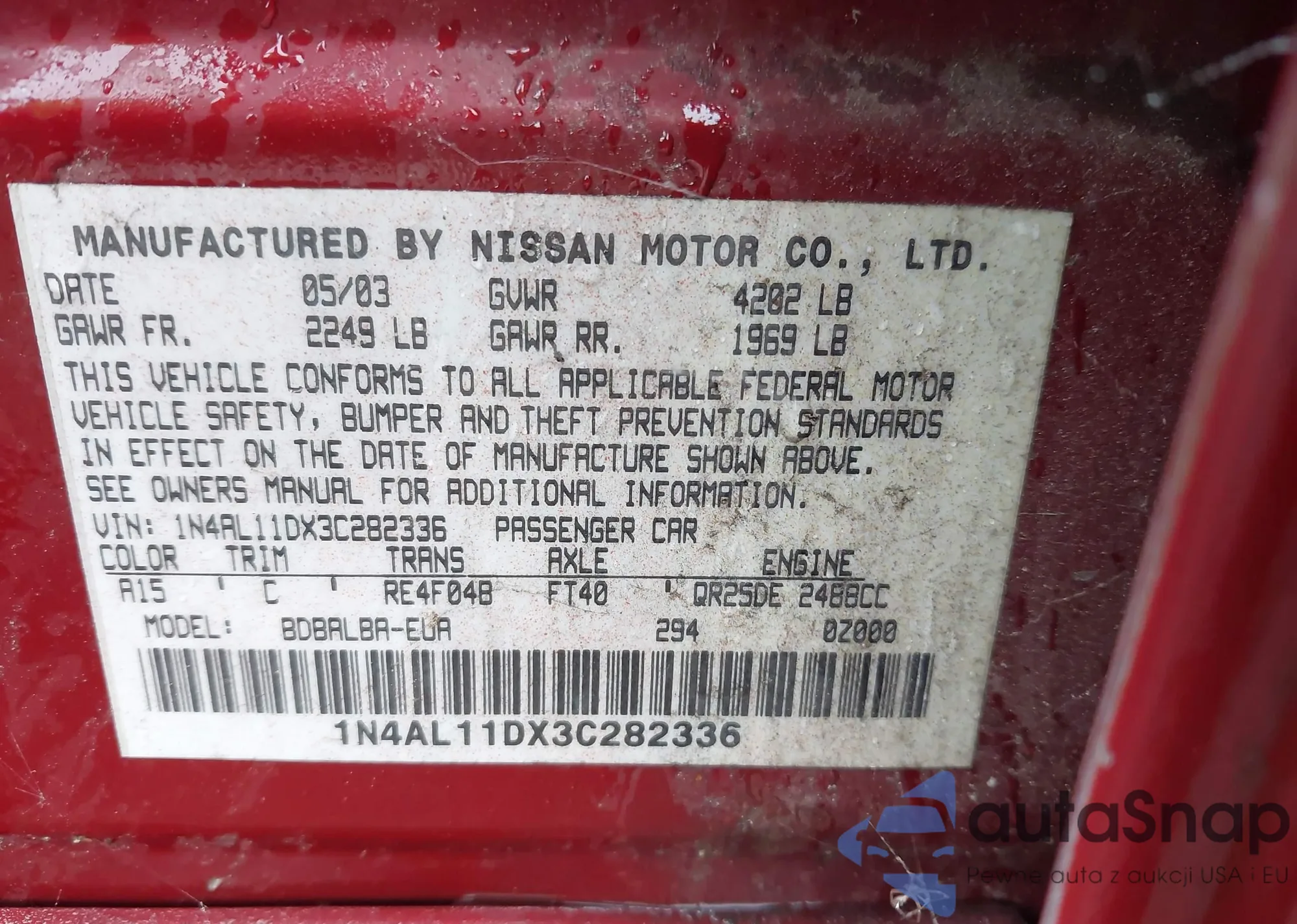 Nissan Altima 2003 – Historia pojazdu (sprzedany na IAAI)