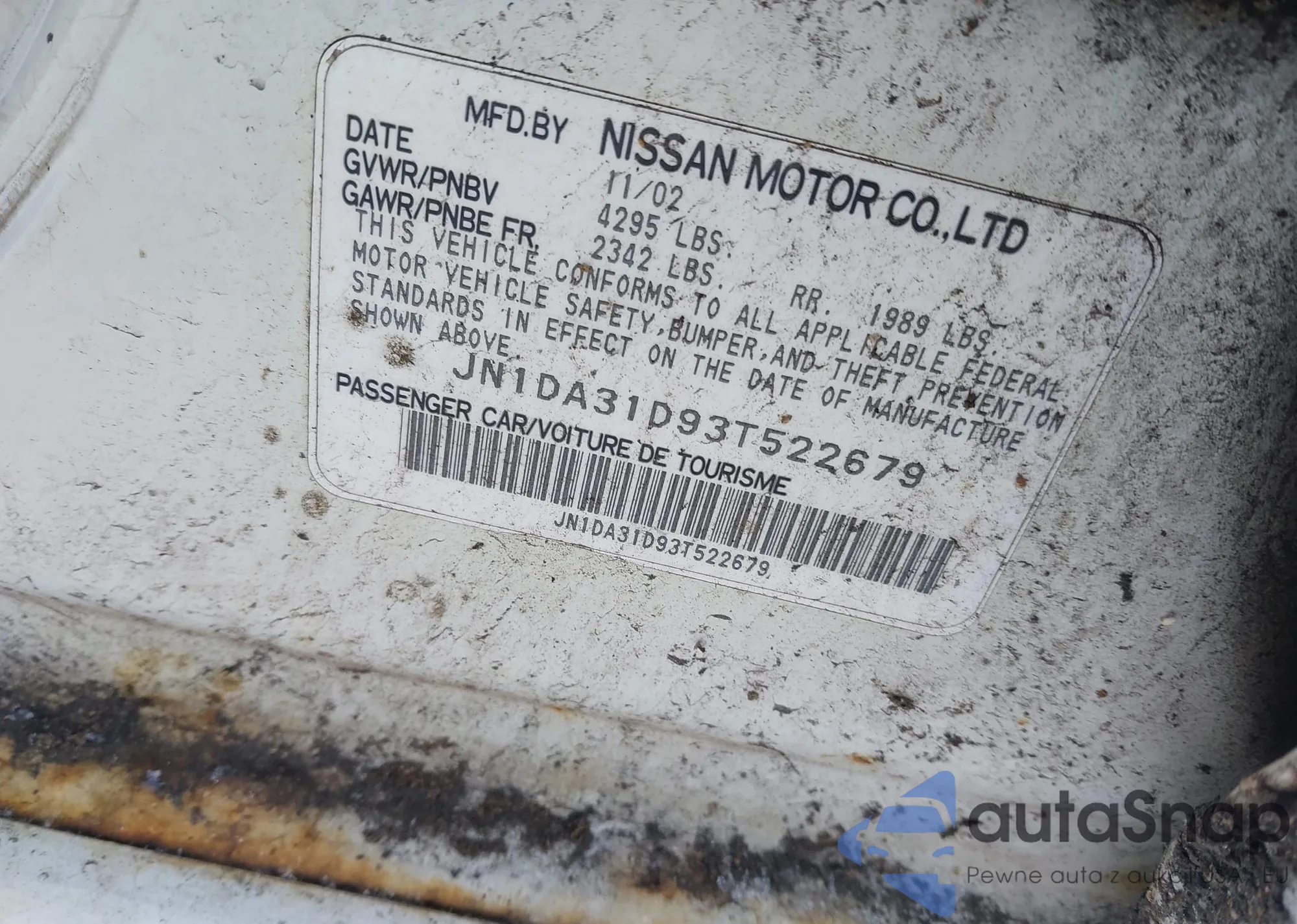 VIN: JN1DA31D93T522679