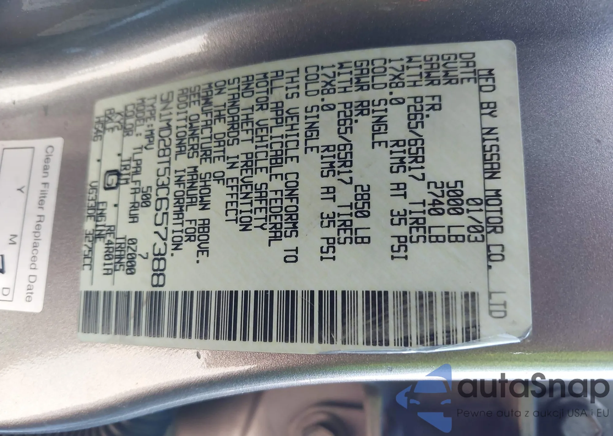 • VIN: 5N1MD28T53C657388