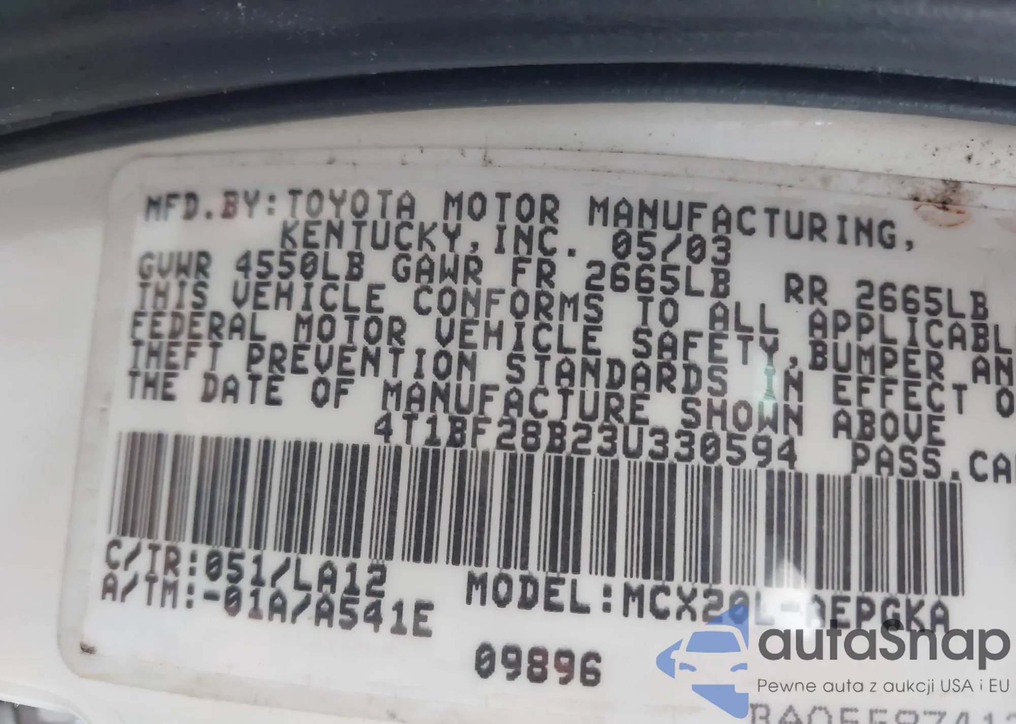 Samochód Toyota Avalon 2003 (VIN 4T1BF28B23U330594) nie był wcześniej licytowany. Dokumenty są czyste, przebieg odpowiada lub jest niższy niż średnia rynku. Sprzedaje go firma ubezpieczeniowa – polecamy zakup. Dostawa do portu zajmie ok. 6–8 tygodni.