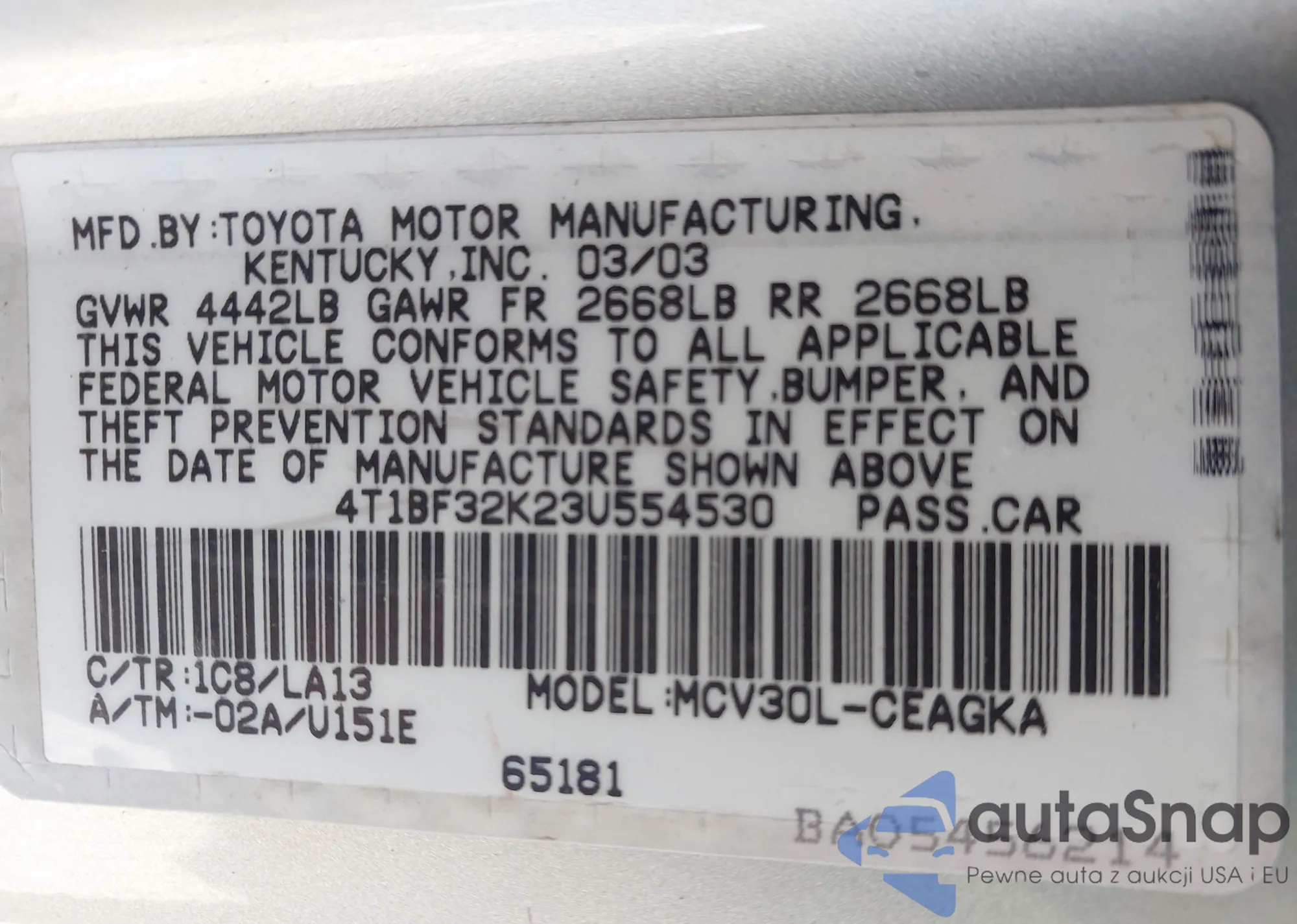 VIN: 4T1BF32K23U554530